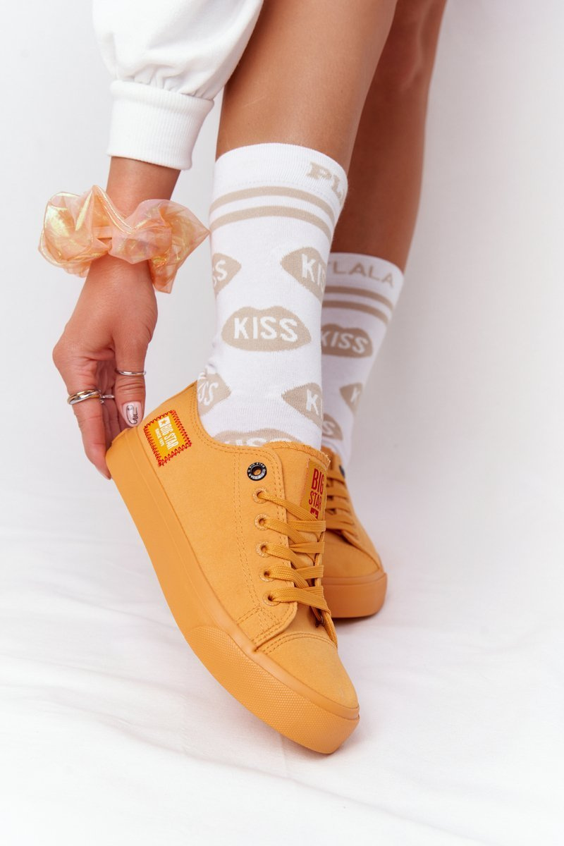 Damskie Skórzane Tenisówki BIG STAR HH274078 Czarno-Złote