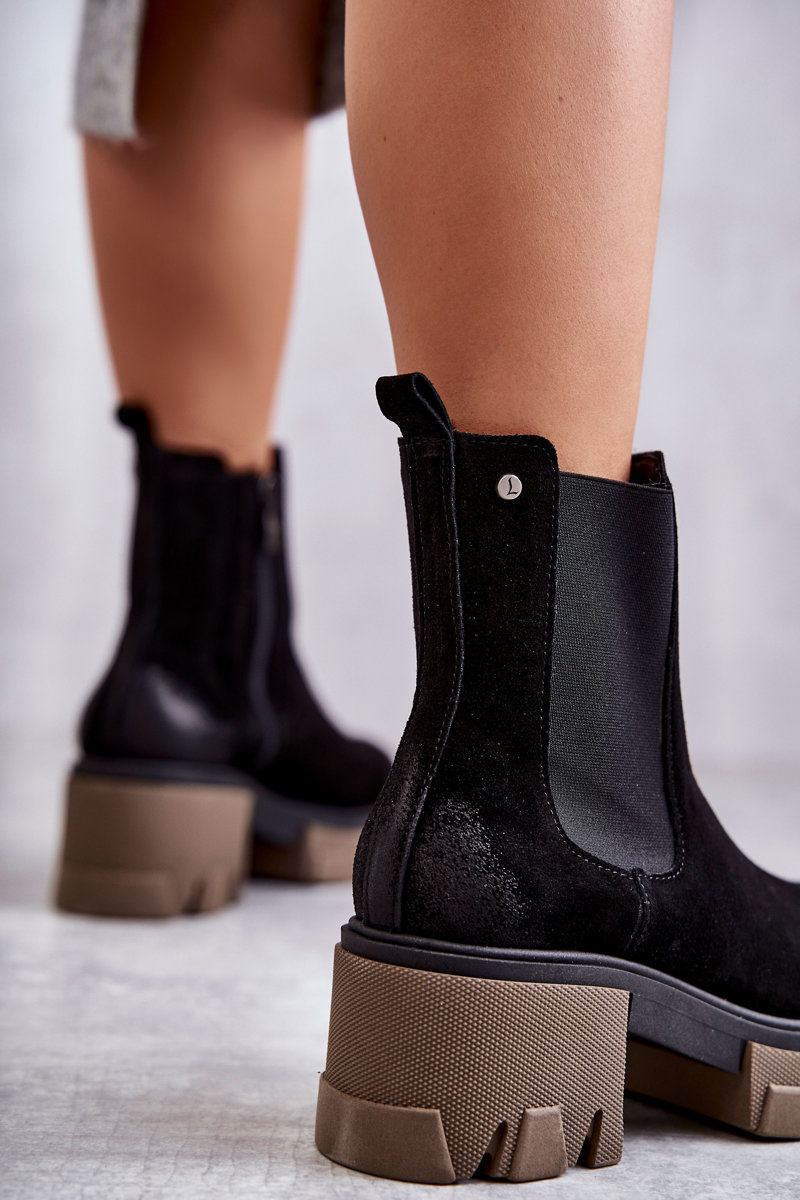 Zamszowe Damskie Botki Na Platformie Czarne Lemar Hilde