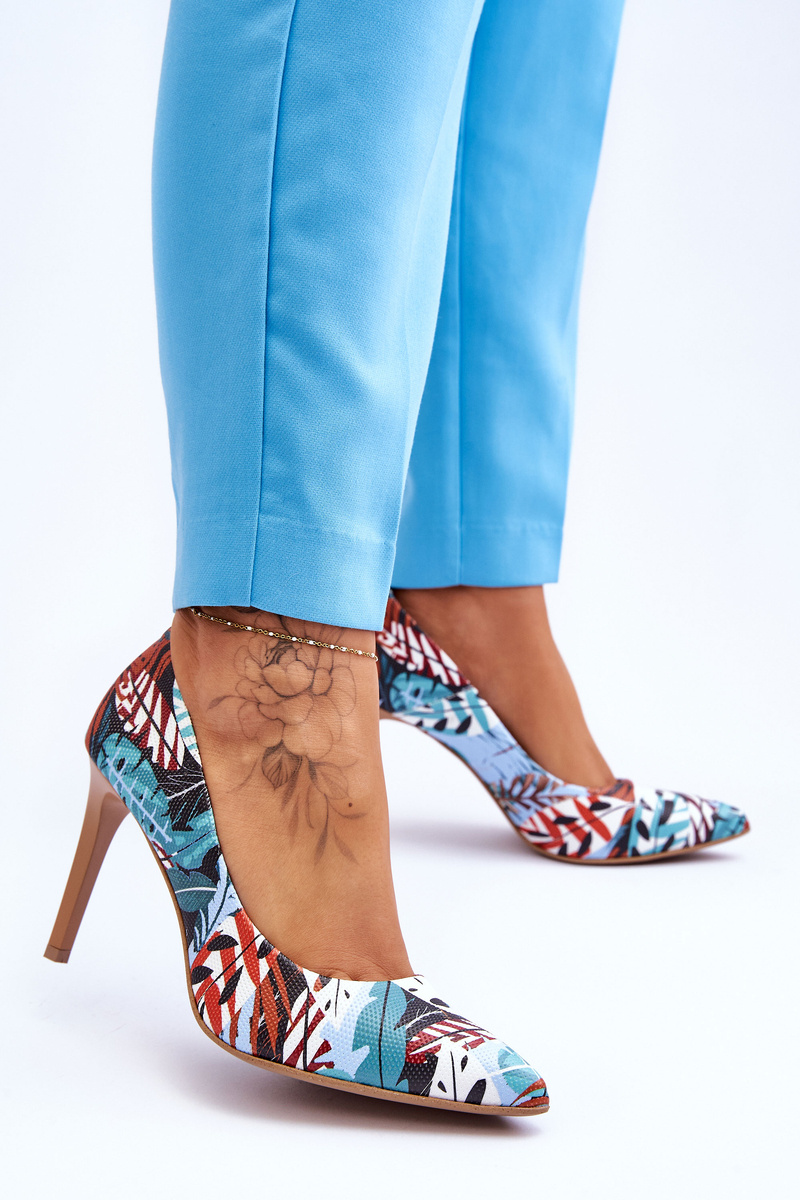 Modne Skórzane Szpilki Lewski Shoes 2659 Zielono-Niebieskie