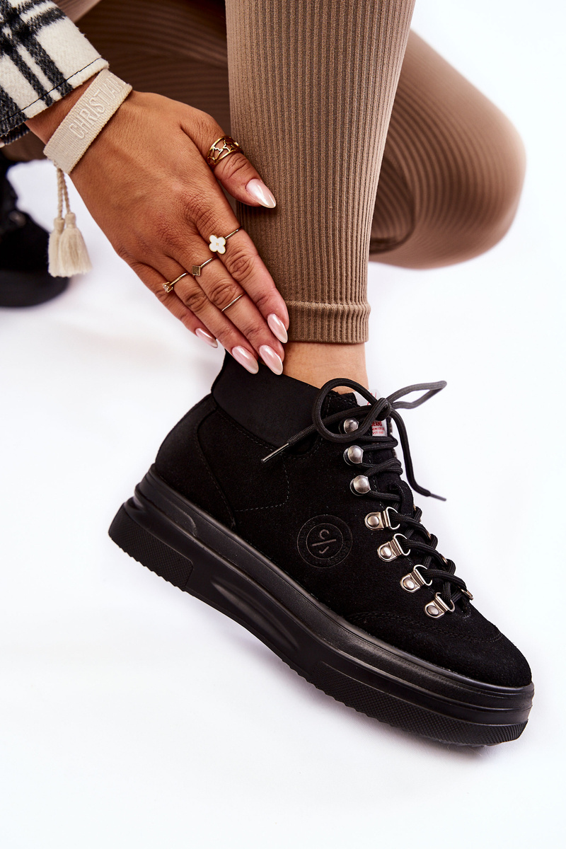 Botki w stylu traperów idealnie sprawdzą się na chłodniejsze dni! Zostały wykonane z połączenia imitacji zamszu i materiału syntetycznego. Posiadają klasyczne sznurowanie na okrągłe sznurówki. Model z dodatkowo usztywnianym zapiętkiem. Trapery osadzono na grubej, masywnej platformie. Doskonale sprawdzą się w jesiennych stylizacjach. Musisz je mieć! Przy wyborze rozmiaru prosimy sugerować się tabelą rozmiarów.