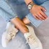 Buty sportowe damskie na podwyższeniu. Wykonane są z elastycznej tkaniny przypominającej w dotyku skarpetkę i dzięki temu świetnie przylegają do stopy. Uwielbiamy takie rozwiązania… Są niezwykle uniwersalne, wygodne jak obuwie treningowe, a jednocześnie wyjątkowo stylowe : ) Materiał zewnętrzny + wewnętrzny – tkanina.