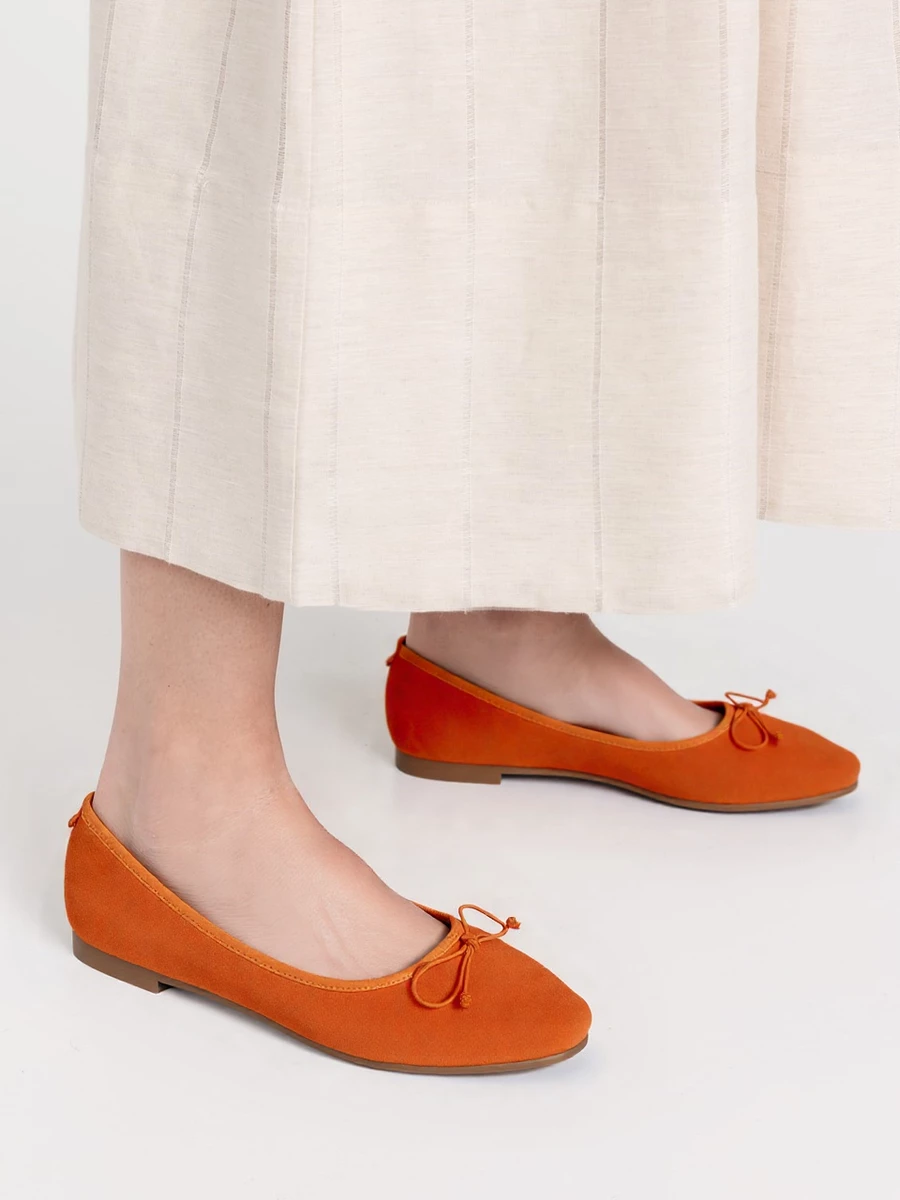 Damskie Baleriny BELLA ORANGE – Uroczy Minimalizm w Energetycznym Odcieniu