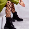 Damskie Botki Zamszowe Sznurowane Na Płaskim Obcasie Czarne Firmina
