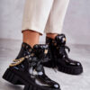 Cudowne botki — kozaki wykonane z lakierowanej eko skóry skradną serce niejednej miłośniczce wysokich obcasów! Model z cholewką do połowy łydki. Zapinane z boku na suwak. Osadzone na obcasie w postaci słupka. W środku zostały ocieplone miłym w dotyku kocem obuwniczym. Dodatkowo zapiętek jest usztywniany. Nie może zabraknąć ich w Twojej szafie! Przy wyborze rozmiaru prosimy sugerować się tabelą rozmiarów.