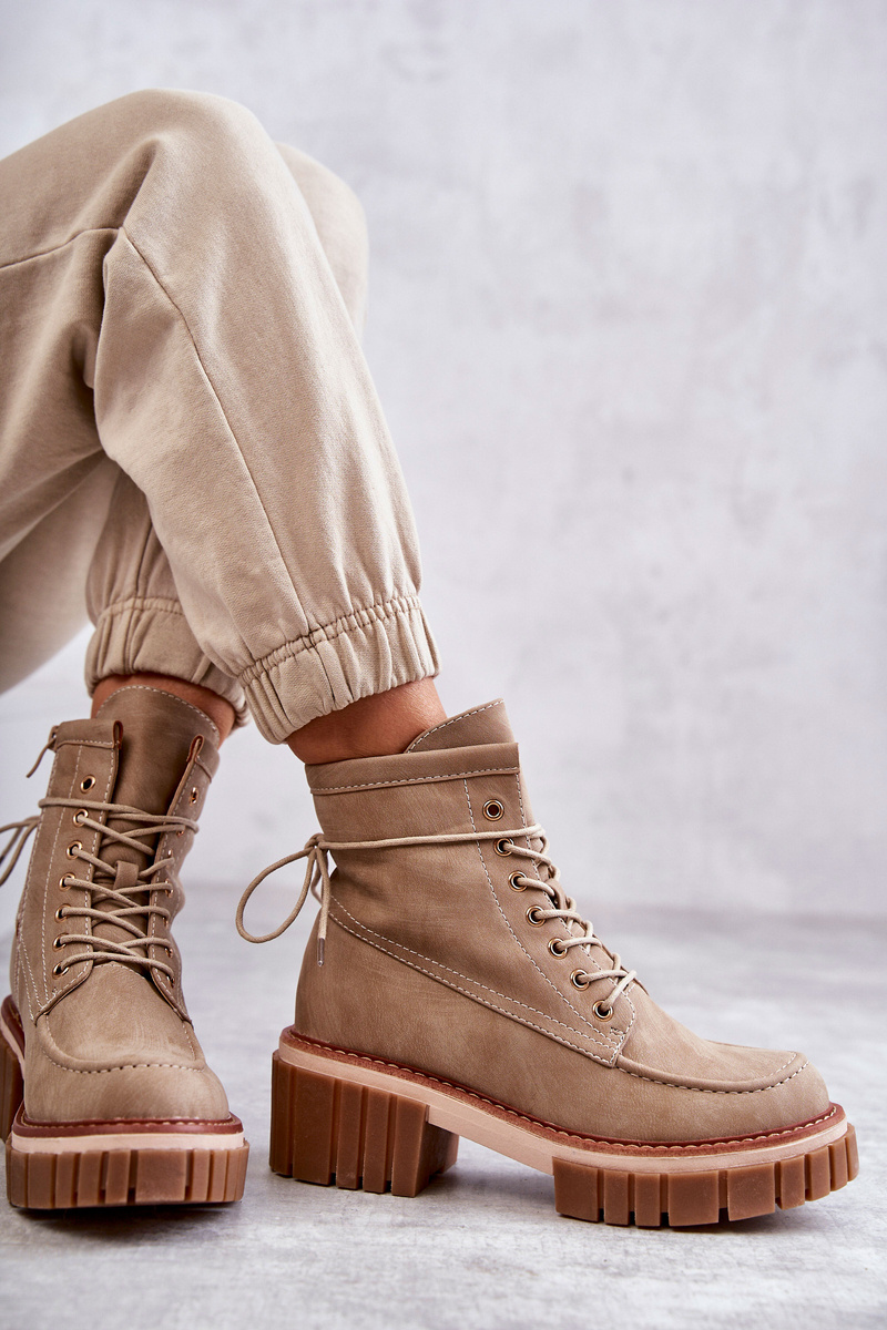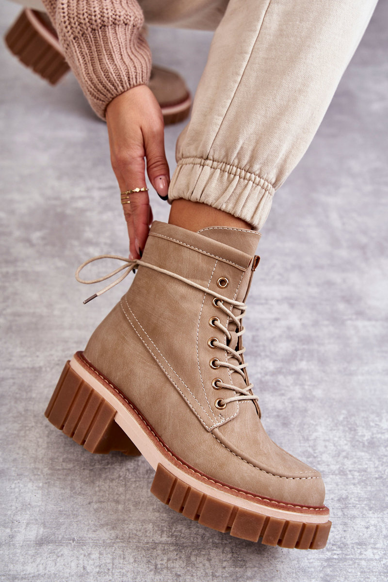 Damskie Modne Botki Ocieplane Beżowe Gerda