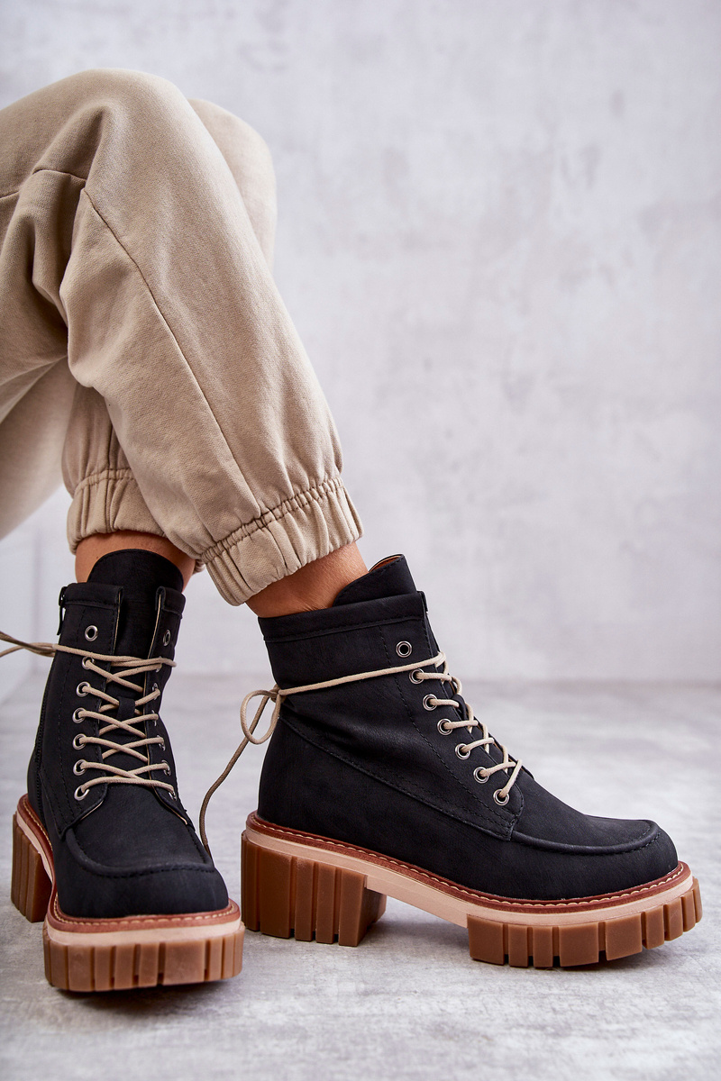 Damskie Modne Botki Ocieplane Czarne Gerda