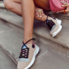 Modne sportowe buty damskie zostały wykonane z przewiewnego materiału z dodatkiem elementów z eko skóry. Cholewka do kostki. Model z wiązaniem, które pozwoli na odpowiednie dopasowanie obuwia do tęgości nogi. Buty osadzone na koturnie oraz platformie. Sneakersy są wygodne w użytkowaniu, dzięki eko skórzanej wkładce. Model z zaokrąglonym noskiem. Przy wyborze rozmiaru prosimy kierować się tabelą rozmiarów.