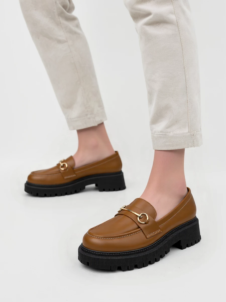 Damskie Mokasyny CARLA CAMEL - Ciepły Odcień z Wyrazistym Detalem