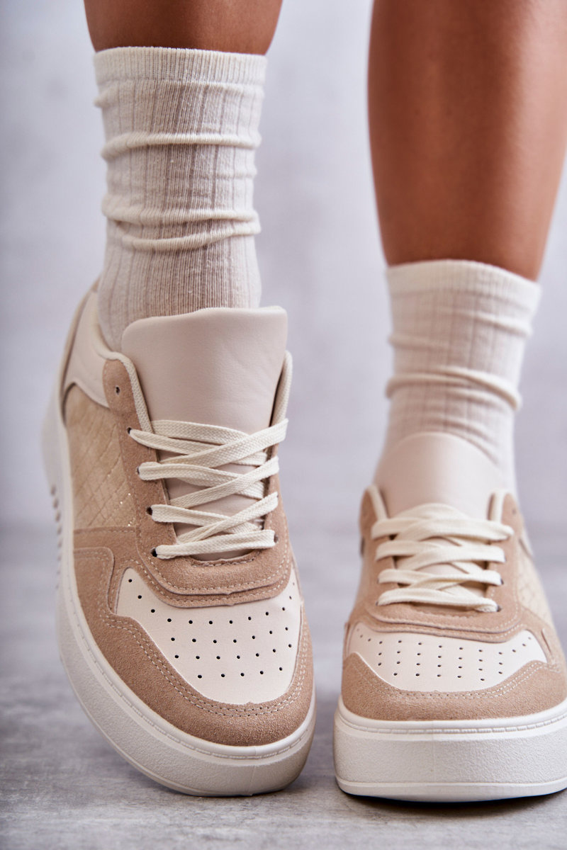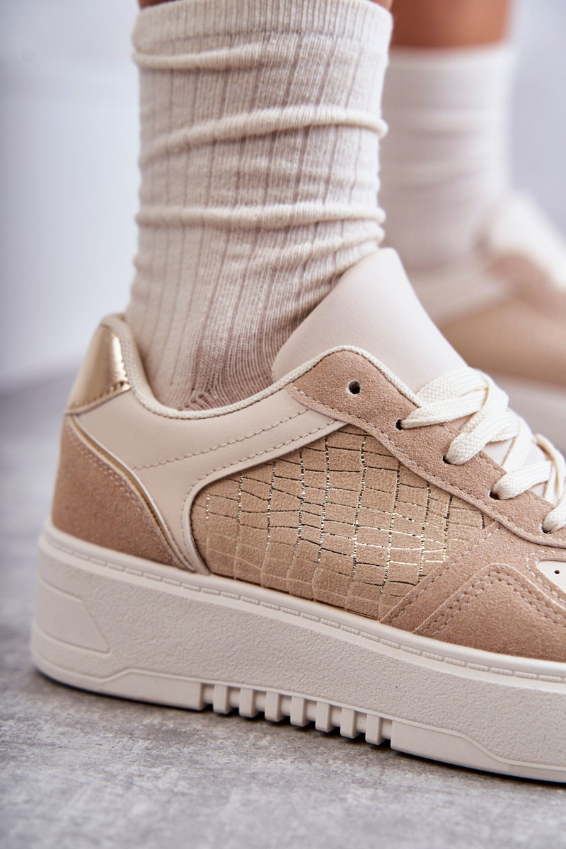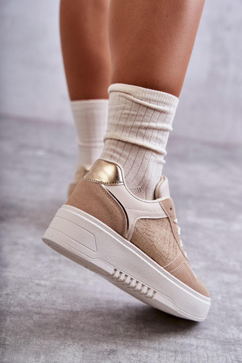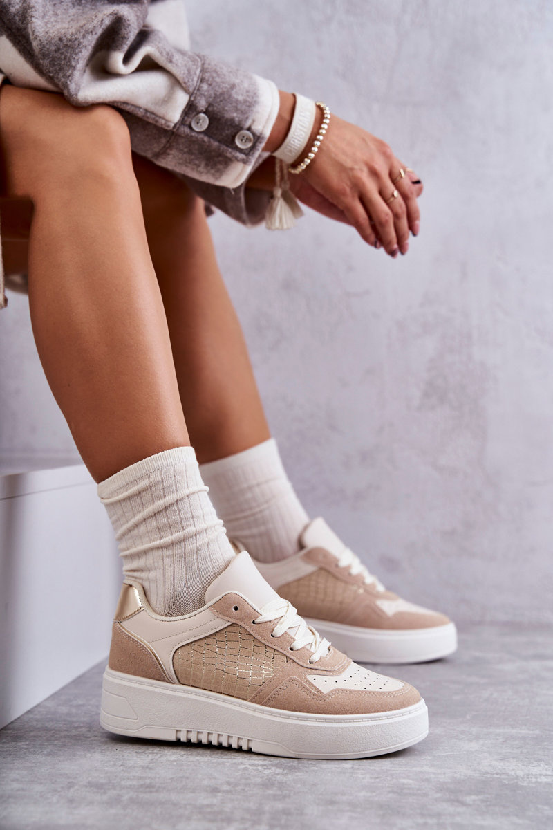 Damskie Niskie Buty Sportowe Na Platformie Beżowe Kyllie
