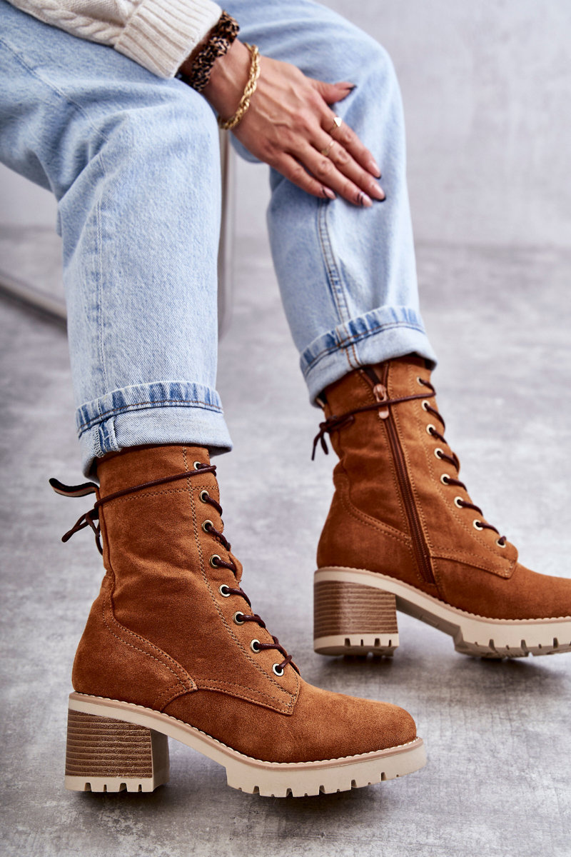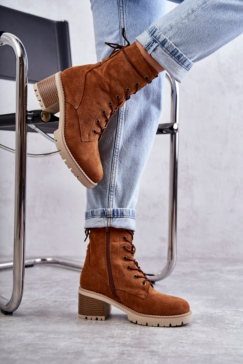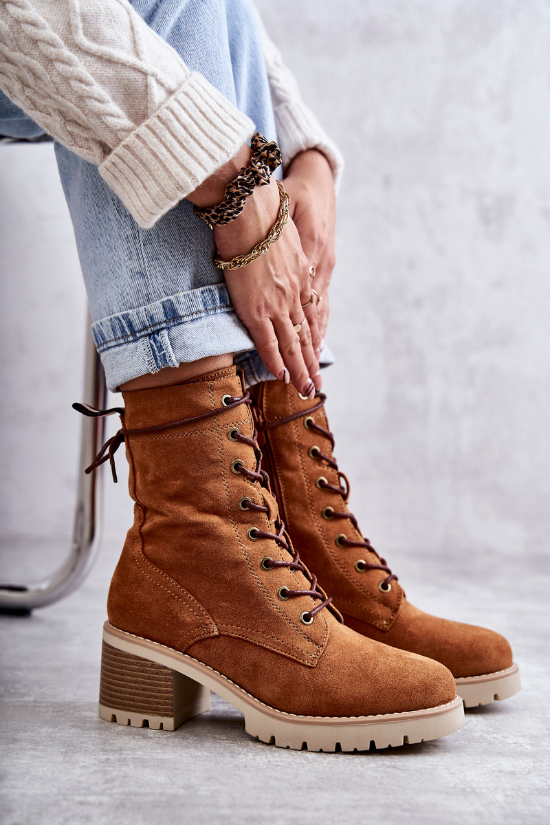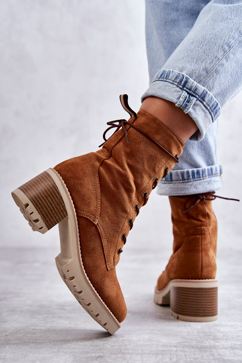 Damskie Ocieplane Botki Trapery Na Obcasie Camel Julieta