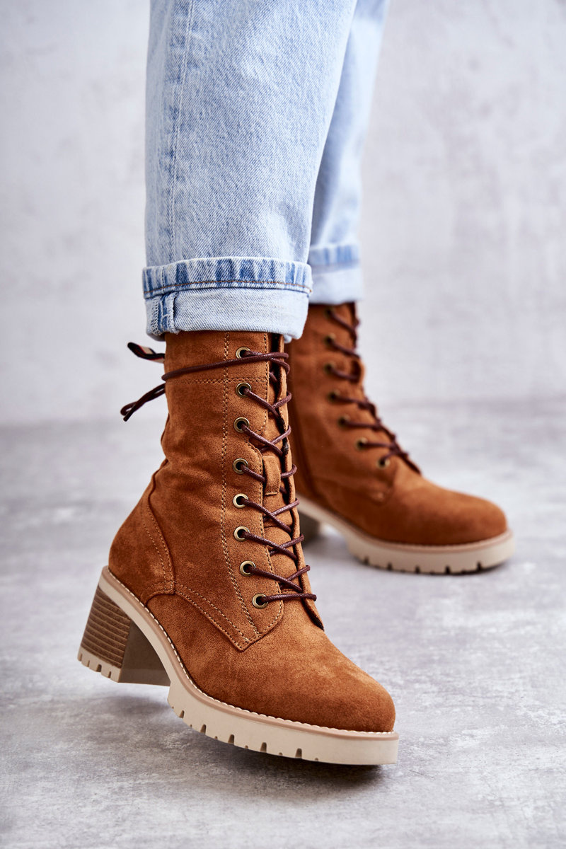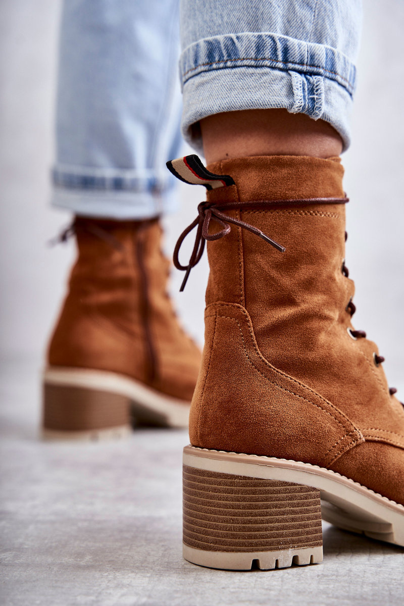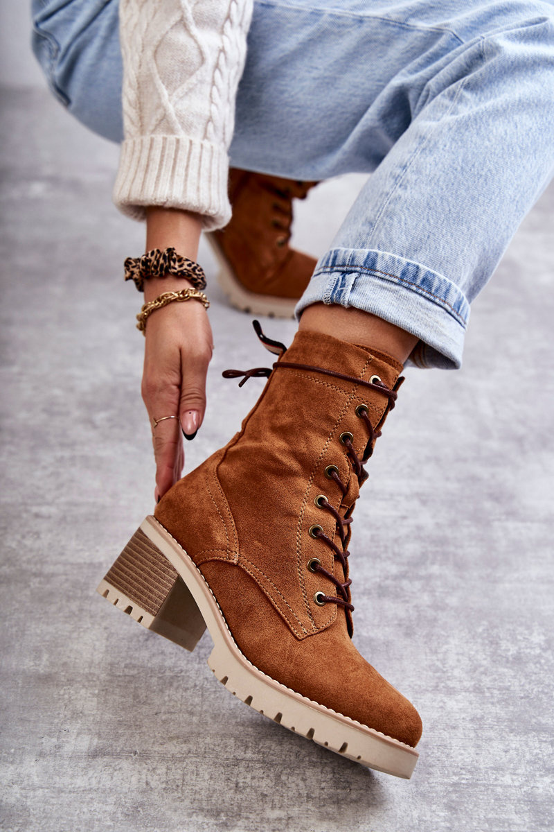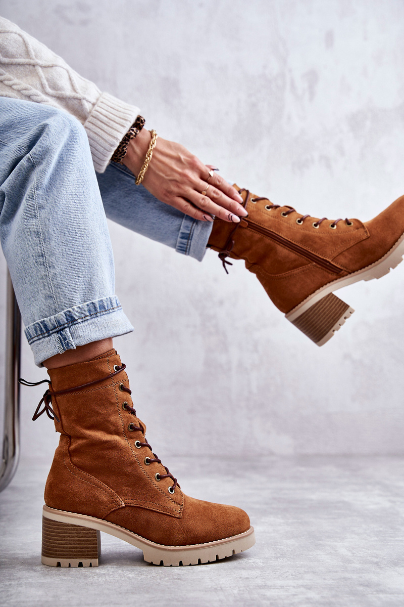 Damskie Ocieplane Botki Trapery Na Obcasie Camel Julieta