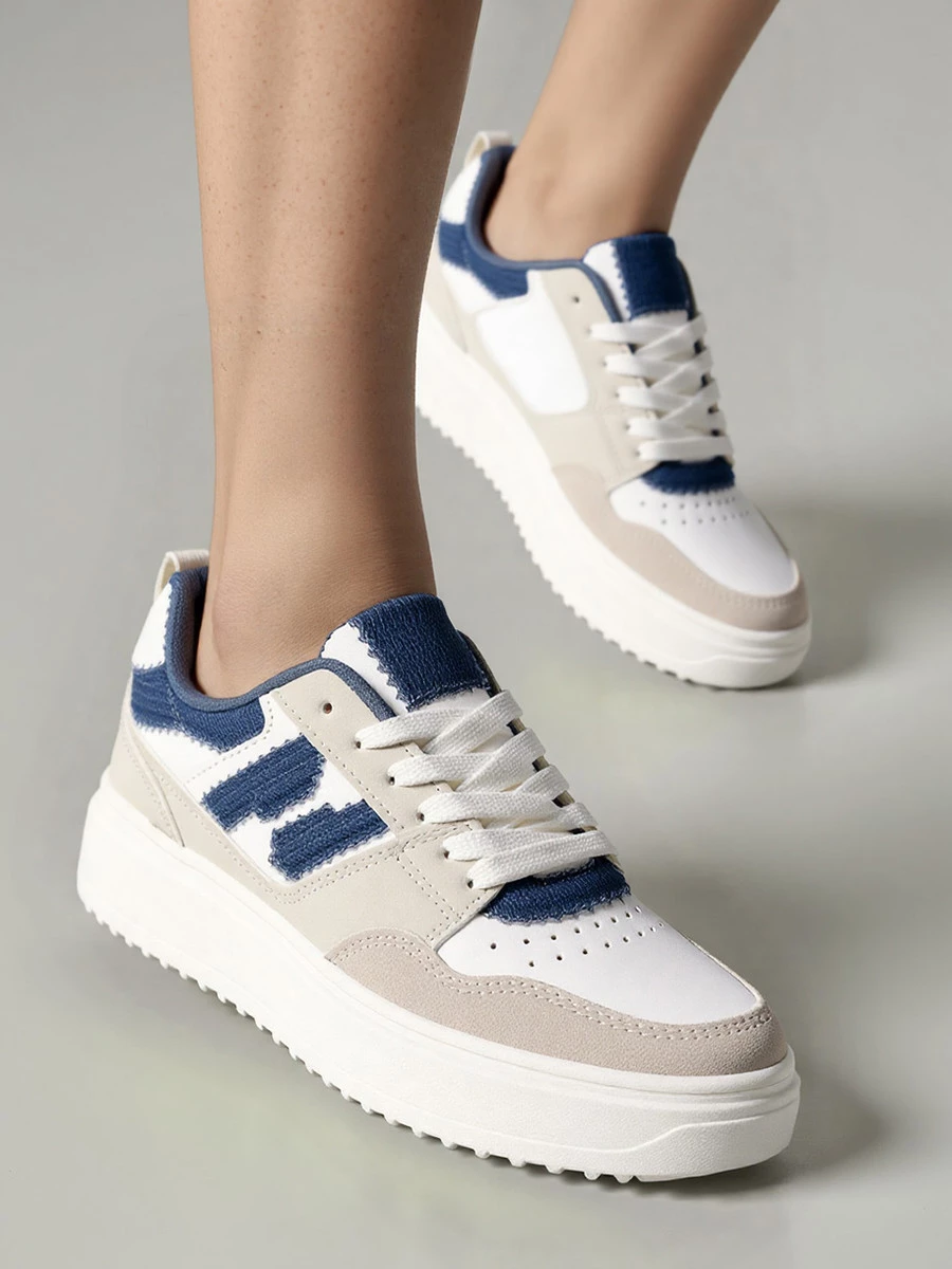 Sneakersy NORVIN w unikalnym połączeniu bieli i niebieskiego jeansu to stylowa propozycja dla kobiet ceniących nowoczesny look. Wykonane z połączenia skóry ekologicznej, zamszu i jeansowej tkaniny, oferują trwałość oraz wyjątkowy design. Gruba podeszwa zapewnia komfort i stabilność, a perforowane detale dodają im sportowego charakteru. Idealne do casualowych i streetwearowych stylizacji.