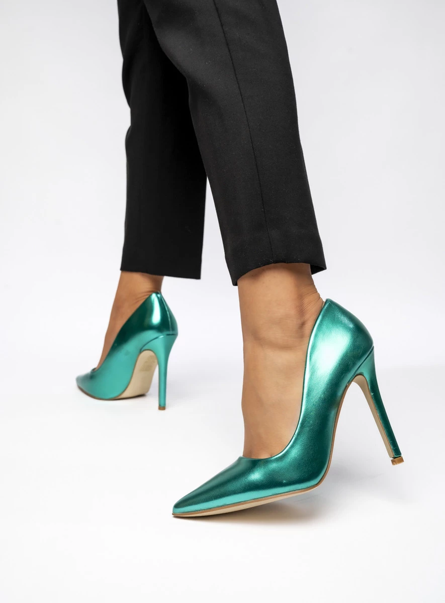 Damskie szpilki LUMINA GREEN to połączenie klasycznej elegancji i nowoczesnego designu. Ich lakierowane wykończenie w metalicznym odcieniu zieleni dodaje wyjątkowego charakteru każdej stylizacji. Smukła szpilka optycznie wydłuża nogi, a wyprofilowany fason zapewnia komfort noszenia. Doskonałe na wieczorowe wyjścia, eleganckie spotkania i specjalne okazje.