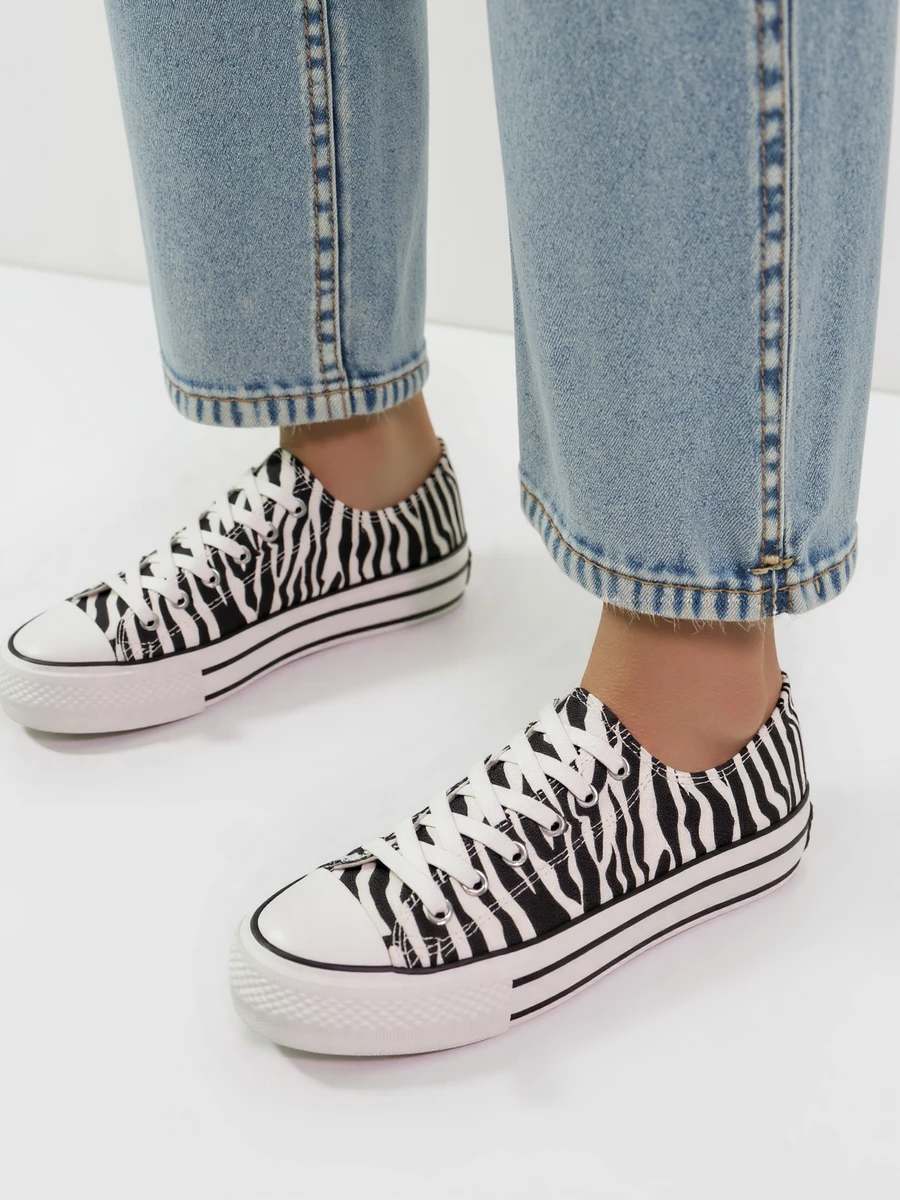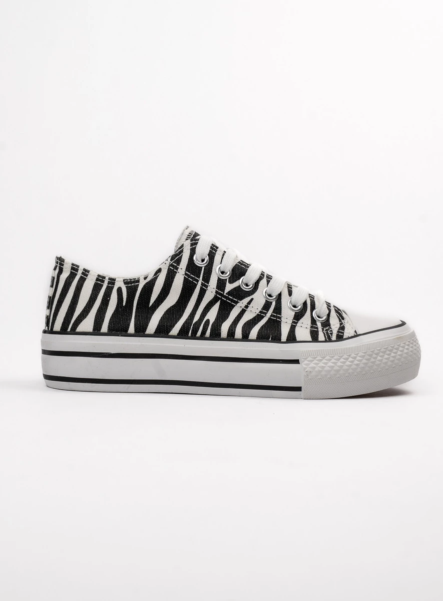 Trampki SAVANA ZEBRA to połączenie klasyki i odważnego designu. Charakterystyczny zwierzęcy wzór w paski zebry nadaje im niepowtarzalnego stylu, który wyróżni Cię z tłumu. Ich lekka konstrukcja i podwyższona podeszwa sprawiają, że są idealnym wyborem zarówno na co dzień, jak i do streetwearowych stylizacji.