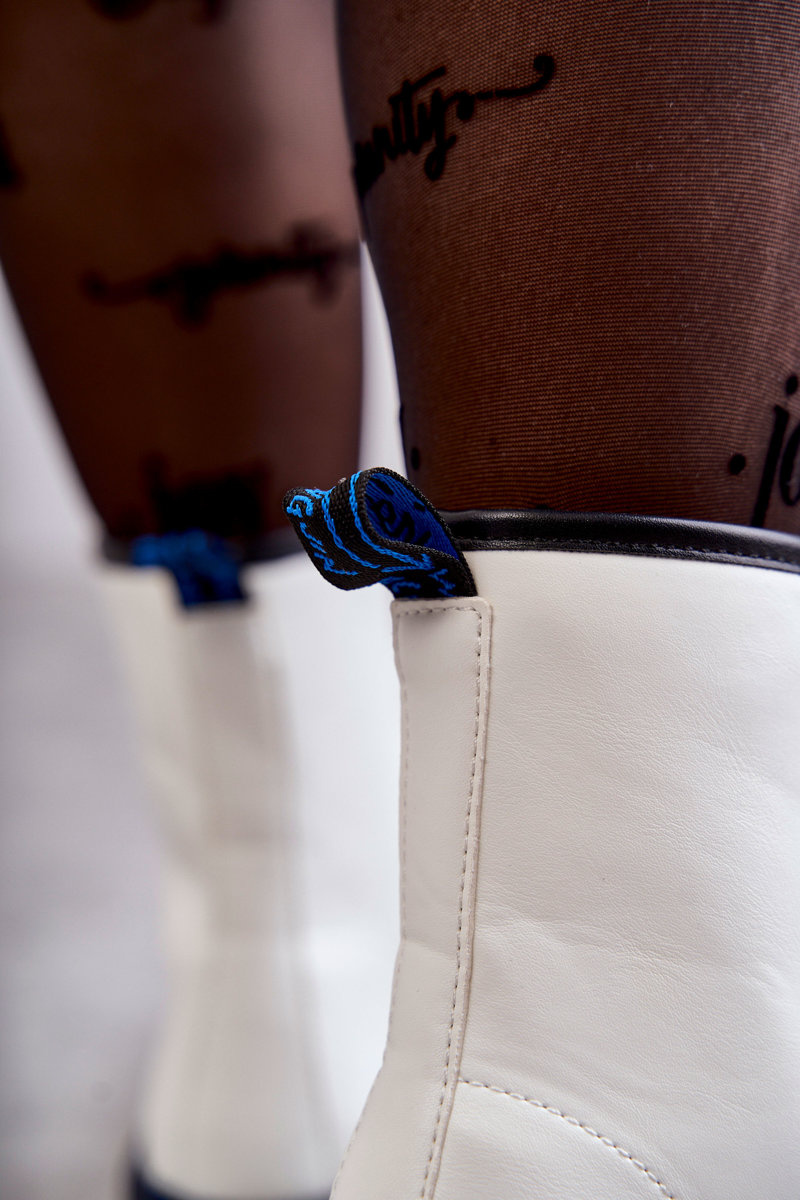 Wyjątkowe botki damskie posiadają klasyczne wiązanie na okrągłe sznurowadła oraz suwak ułatwiający zakładanie obuwia. Posiadają delikatne przeszycia na cholewce. Wykonane z eko skóry. Usztywniany zapiętek zapewni stabilizację stopy. Botki osadzono na płaskim, masywnym obcasie oraz platformie, która jest dodatkowo obszyta nicią. Przy wyborze rozmiaru prosimy sugerować się tabelą rozmiarów.