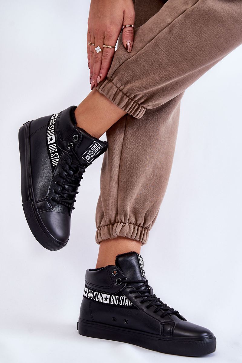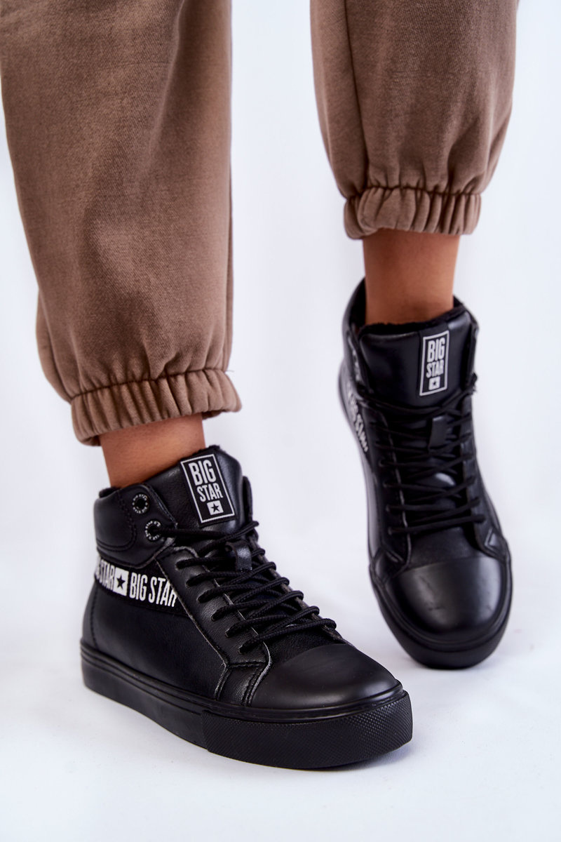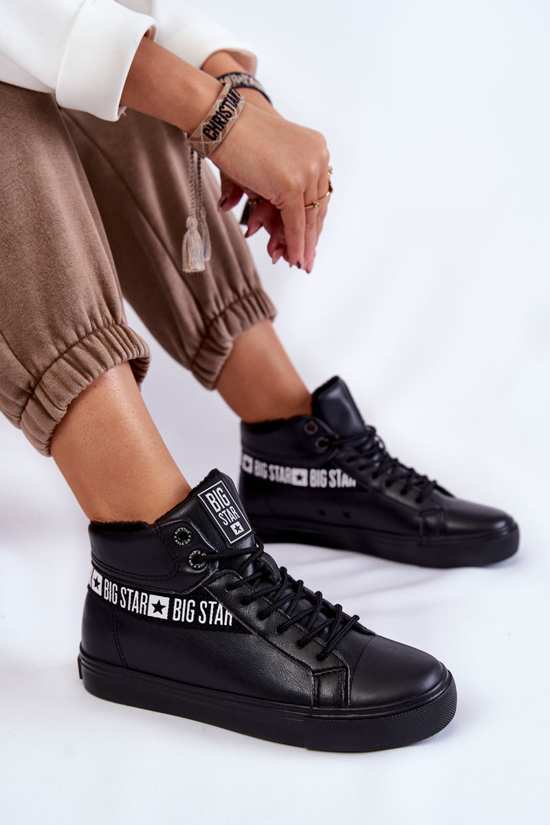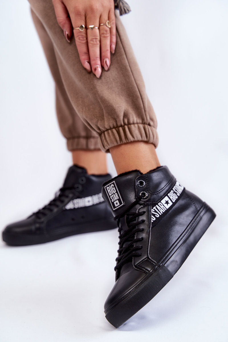 Damskie Wysokie Ocieplane Skórzane Trampki Big Star EE274355 Czarne