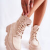 Klasyczne botki z cholewką za kostkę zostały wykonane z przyjemnego w dotyku eko zamszu. Model ten posiada z boku cholewki suwak. Dodatkowo są sznurowane, co pozwoli na odpowiednie dopasowanie obuwia do tęgości nogi. Osadzone na delikatnej platformie oraz płaskim obcasie. Posiadają w środku ocieplenie w postaci miłego w dotyku futerka. Zapiętek delikatnie usztywniany. Przy wyborze rozmiaru prosimy sugerować się tabelą rozmiarów.