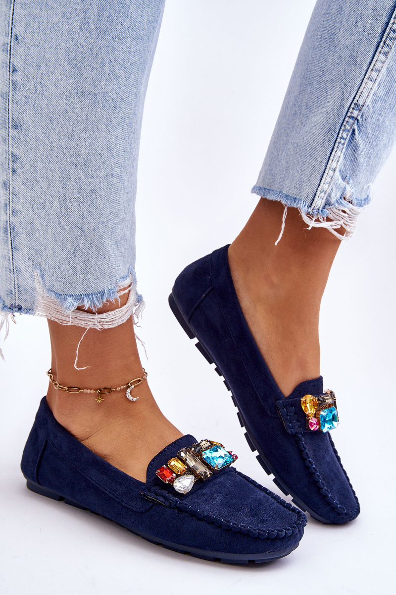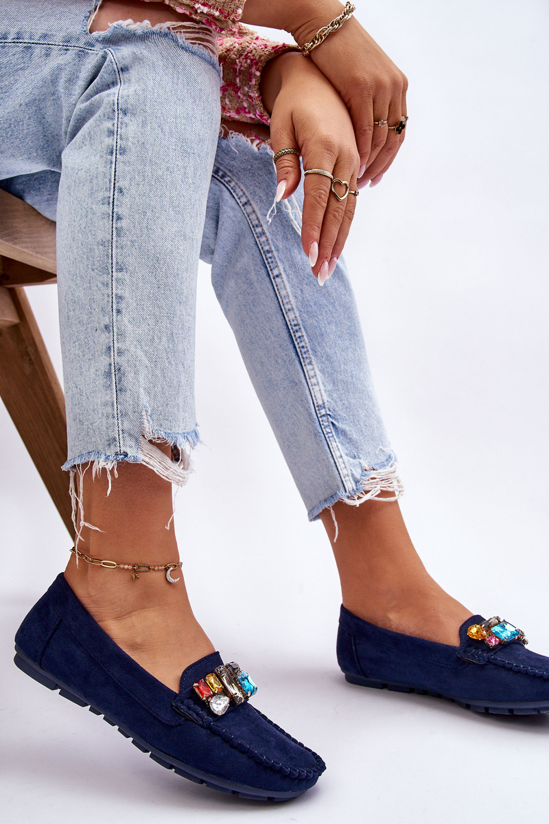 Damskie Zamszowe Mokasyny Z Kryształkami Granatowe Lucille