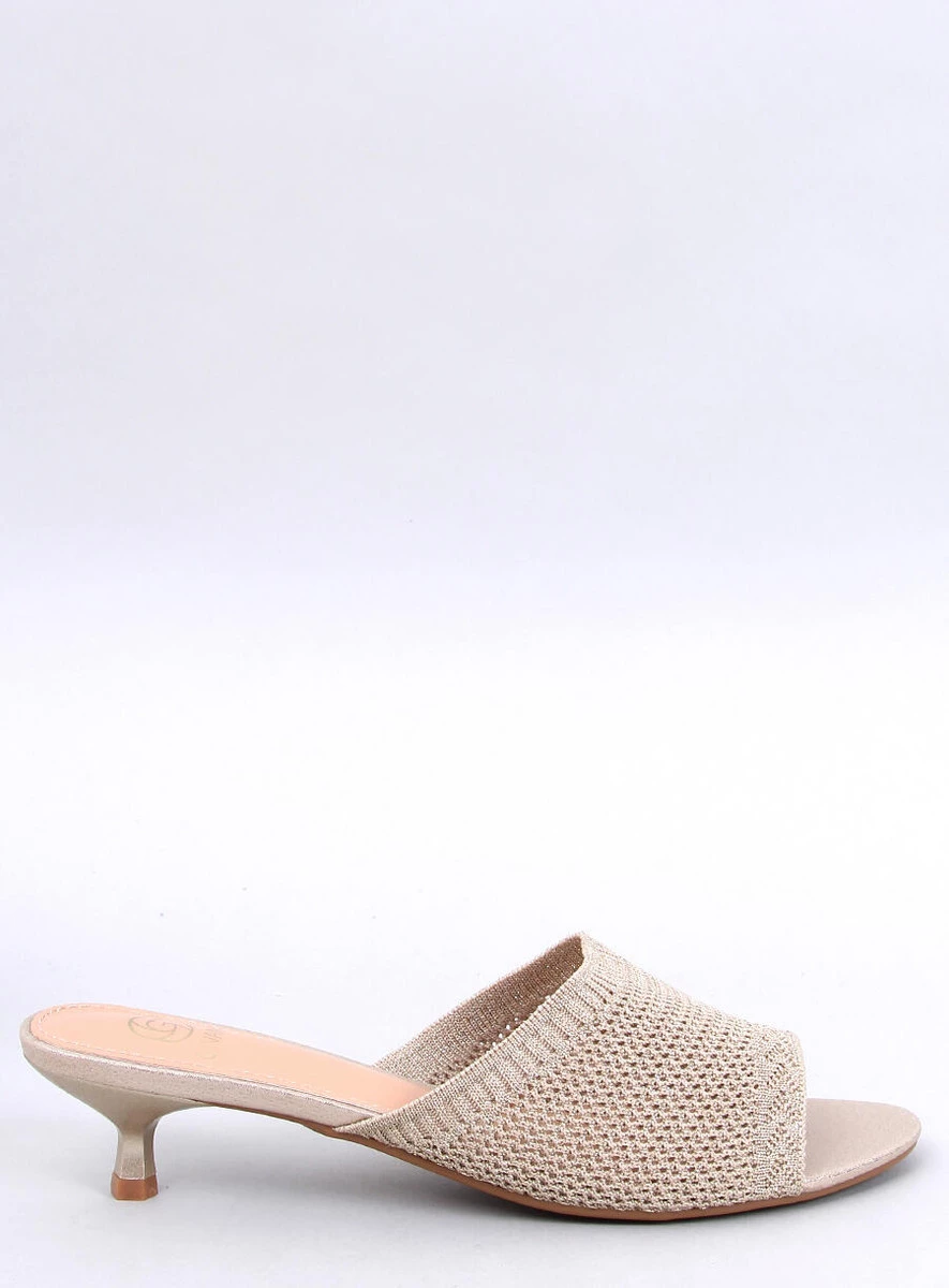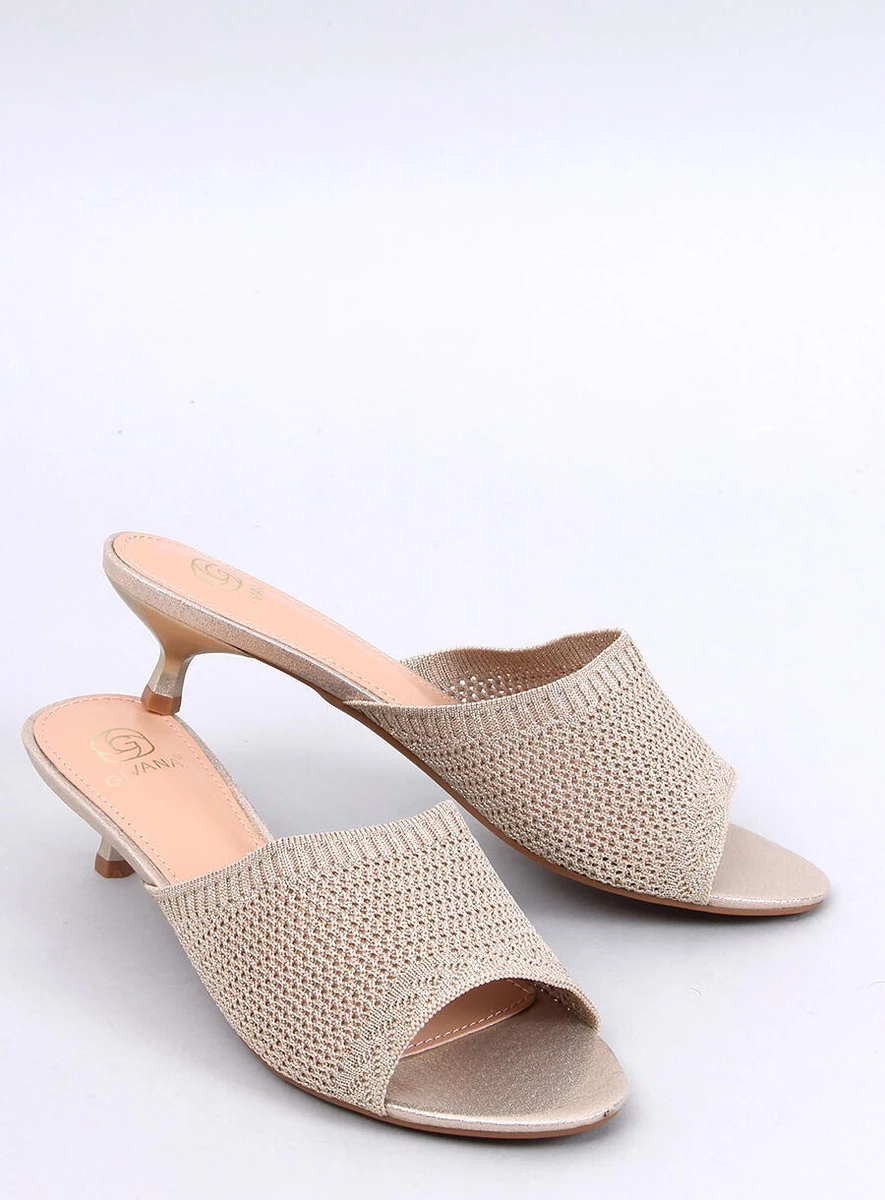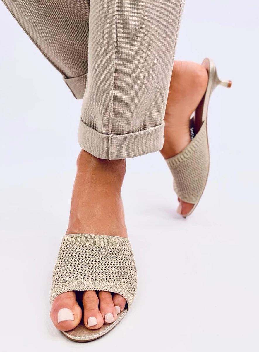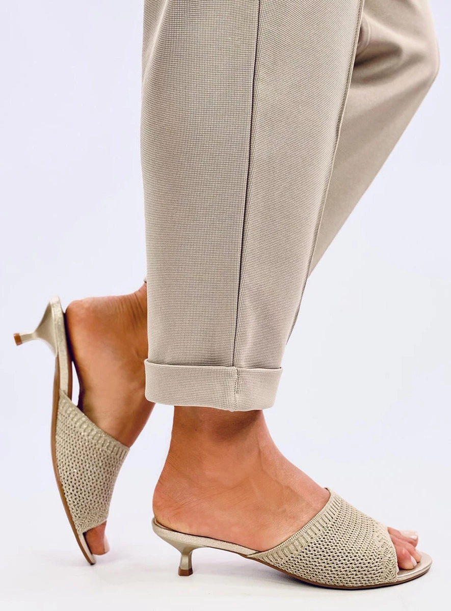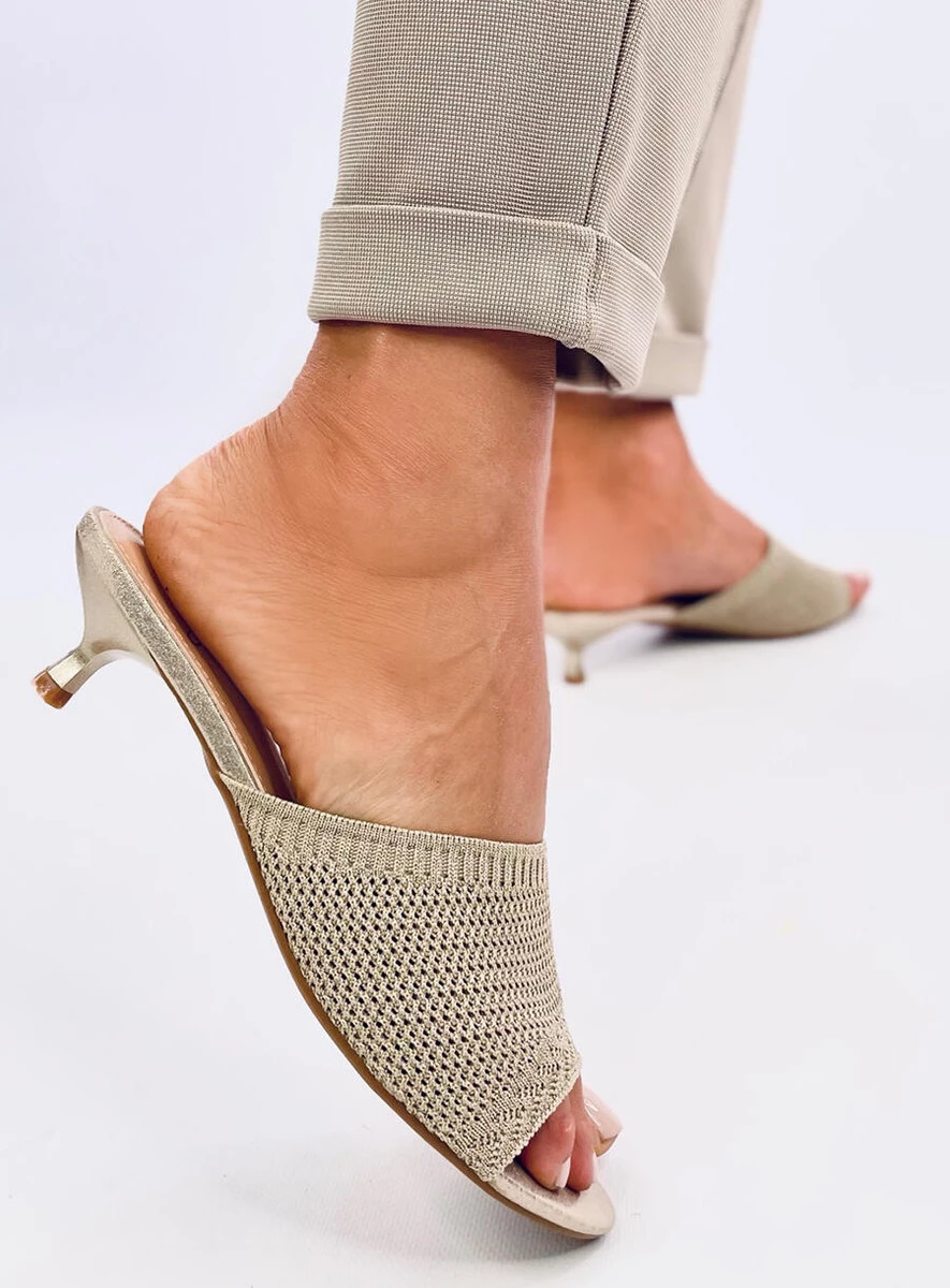 Klapki damskie na niskiej szpilce – 4,5 cm. To buty, które wyglądają modnie, a dodatkowo są bardzo wygodne – mają szeroki pas wykonany z elastycznej, ażurowej tkaniny, dzięki czemu nie uciskają stopy. Nie czekaj i zamów je już dziś! Materiał zewnętrzny – skóra ekologiczna + tkanina.