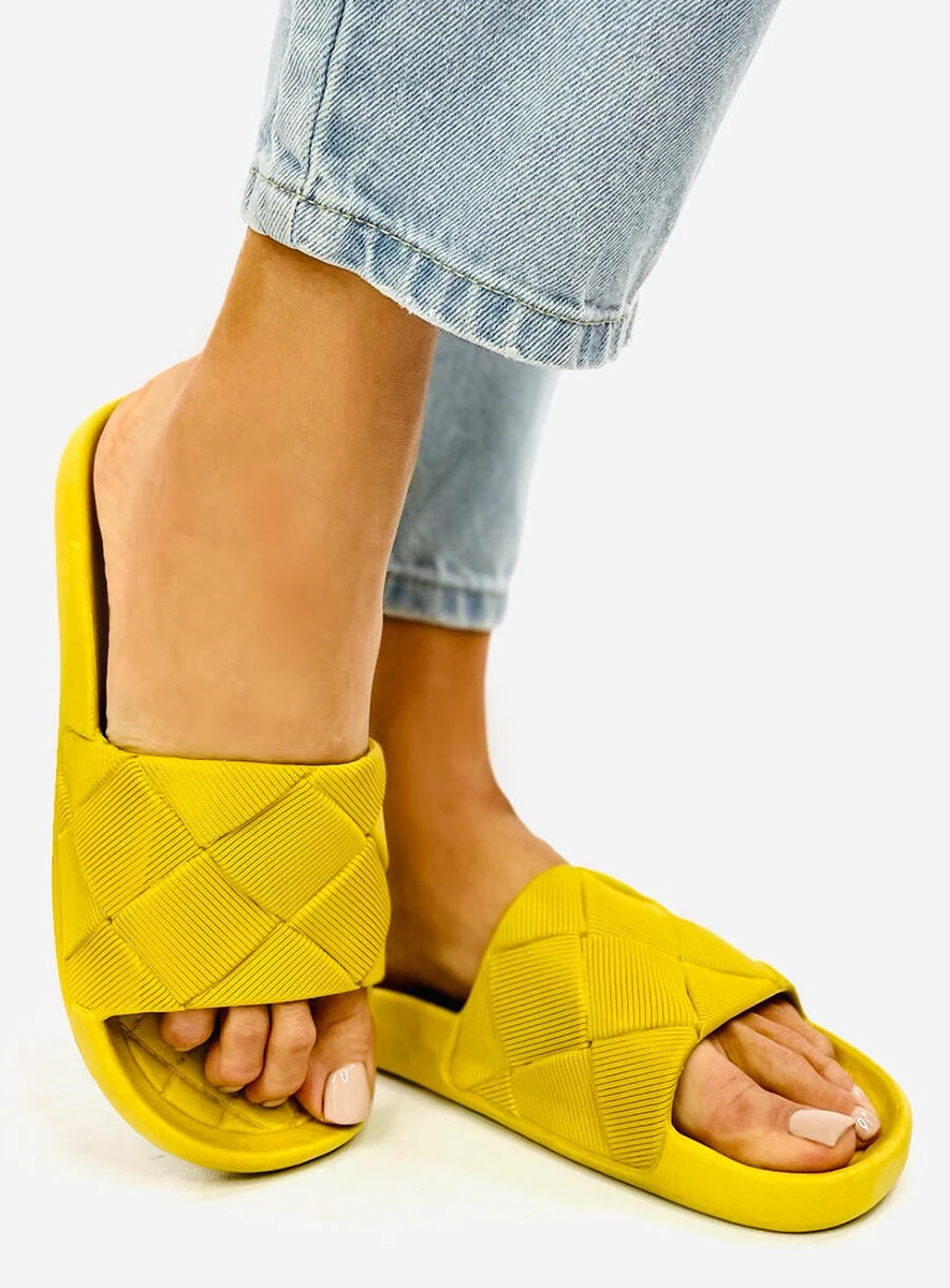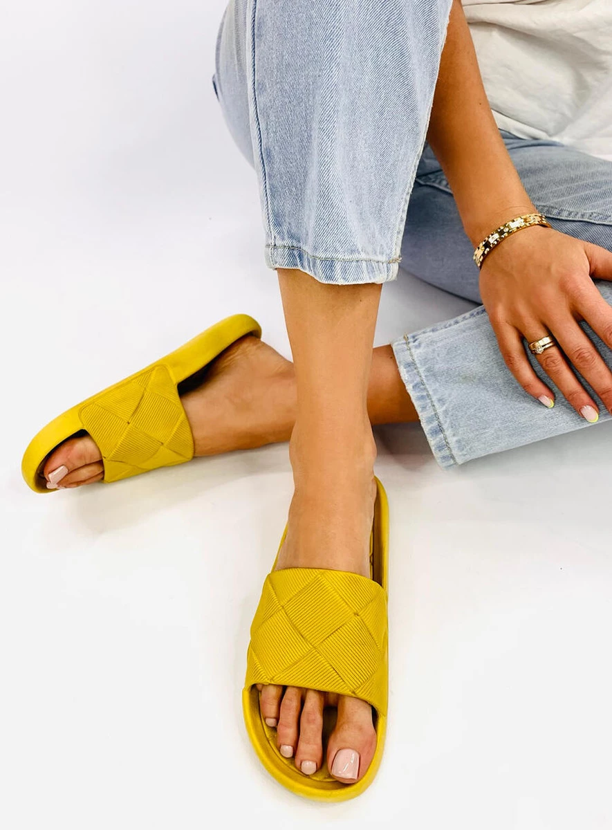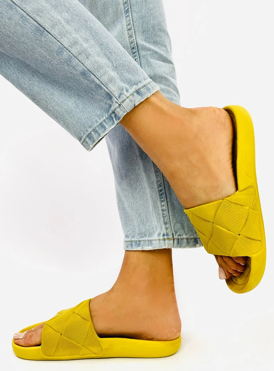Klapki damskie gumowe. Wzrok przyciąga prosty fason o najmodniejszym, pikowanym wzorze… To patent na wygodę, a ponadto modowy hit sezonu : ) Nie czekaj i zamów je już dziś, a nie pożałujesz! Materiał zewnętrzny – guma.