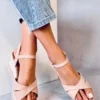 Licowe klapki damskie na niskim obcasie typu kaczuszka – 5,5 cm. Ten model wyróżnia najmodniejsza, kwadratowa podeszwa oraz stylowy, pleciony pasek. Z pewnością sprawdzą się na wyjątkowe okazje… Materiał zewnętrzny – skóra ekologiczna.