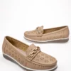 Te mokasyny w kolorze beige to doskonały wybór na co dzień i na specjalne okazje. Modny design połączony z wygodą sprawia, że będą idealne na wiosenne spacery i spotkania. Solidna, gruba podeszwa zapewnia komfort i styl przez cały dzień.