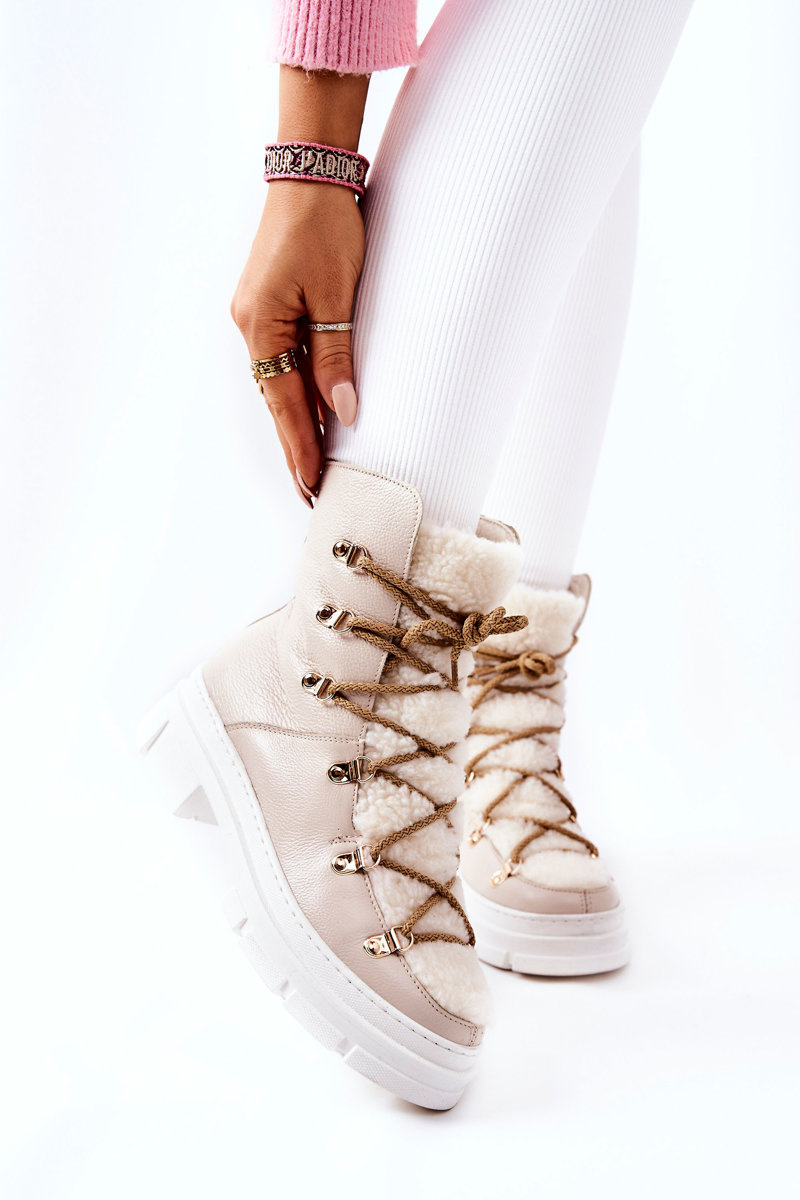 Ocieplane Skórzane Botki Trapery Jasnobeżowe Nerisso