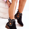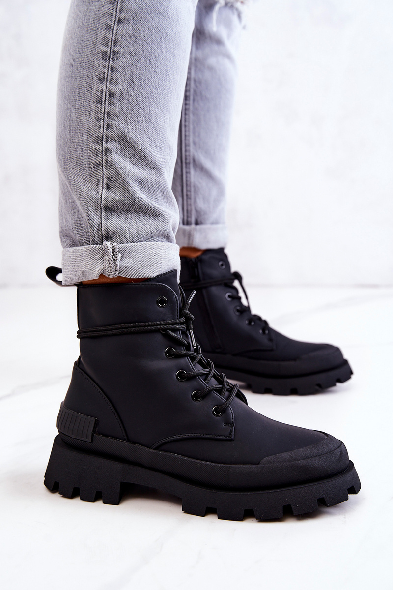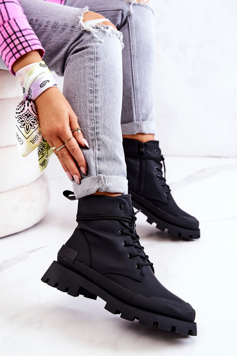 Skórzane Ocieplane Botki Wiązane Czarne Racquell