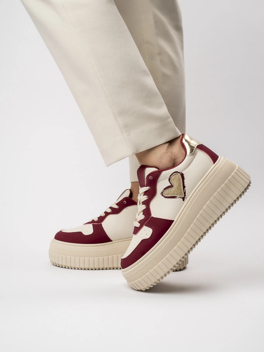 Sneakers Amora Wine to wyjątkowe buty, które łączą w sobie styl i wygodę. Ciepły odcień wine oraz ozdobne serce sprawiają, że doskonale nadają się do codziennych stylizacji. Solidna platforma zapewnia komfort noszenia, a wysokiej jakości materiały gwarantują trwałość. Idealne zarówno na spacery po mieście, jak i na spotkania ze znajomymi. Dodaj do swojej garderoby odrobinę wyjątkowości z tymi unikalnymi sneakersami.