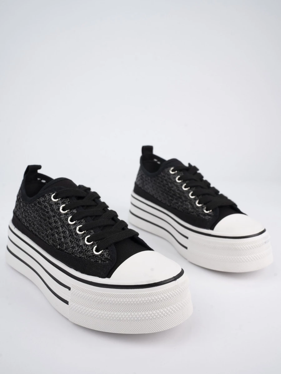 Odkryj wygodę i miejski styl z naszymi Sneakersami Urban Chic! Te buty łączą wyrafinowany wygląd z praktycznością, idealne do codziennego użytku. Wyposażone w grubą, amortyzującą podeszwę, zapewniają komfort nawet podczas długotrwałego noszenia. Ich czarny kolor i materiałowa tekstura nadają im unikalny charakter, pasujący do różnorodnych stylizacji.
