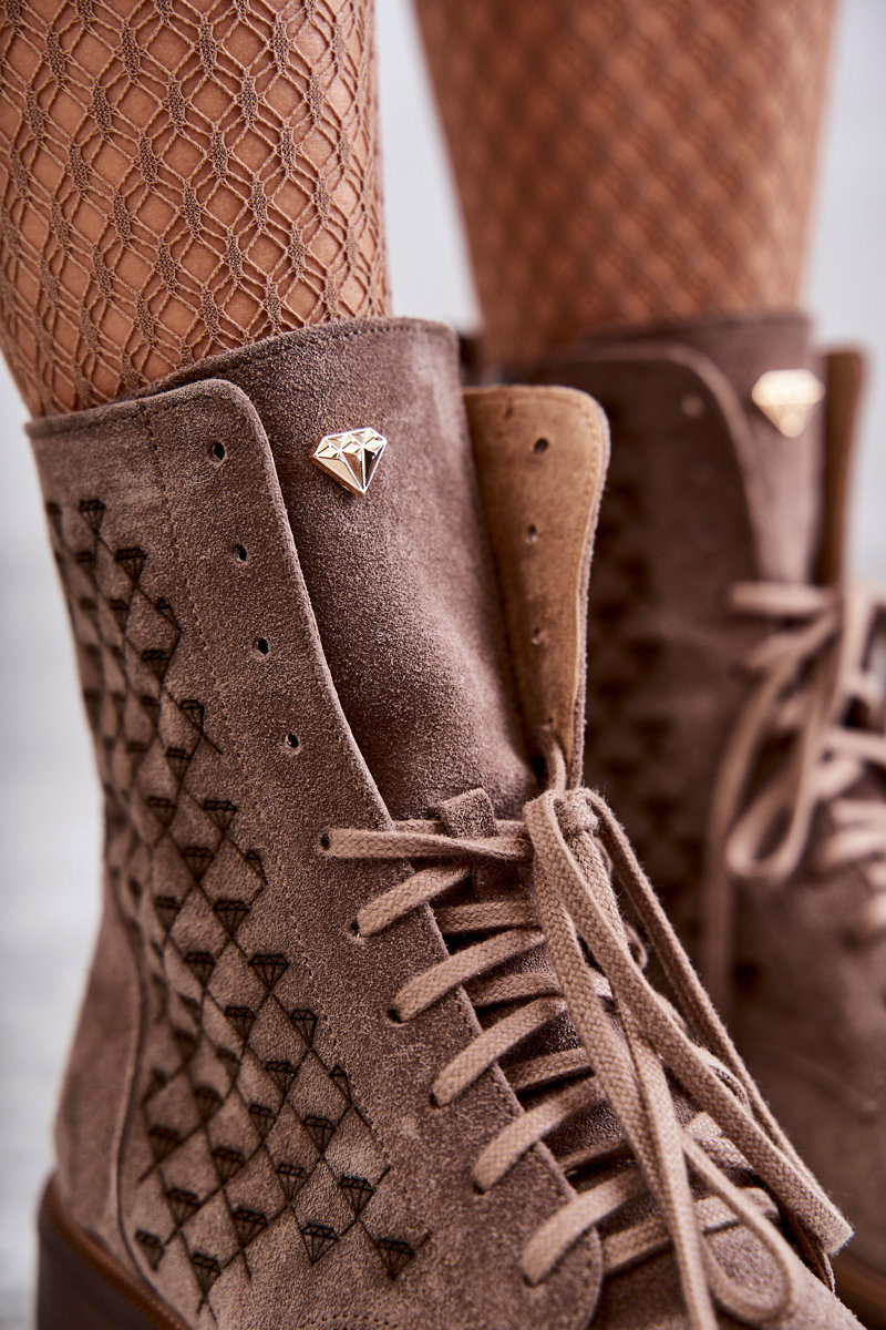 Sznurowane Zamszowe Botki Nicole 2751 Brązowe