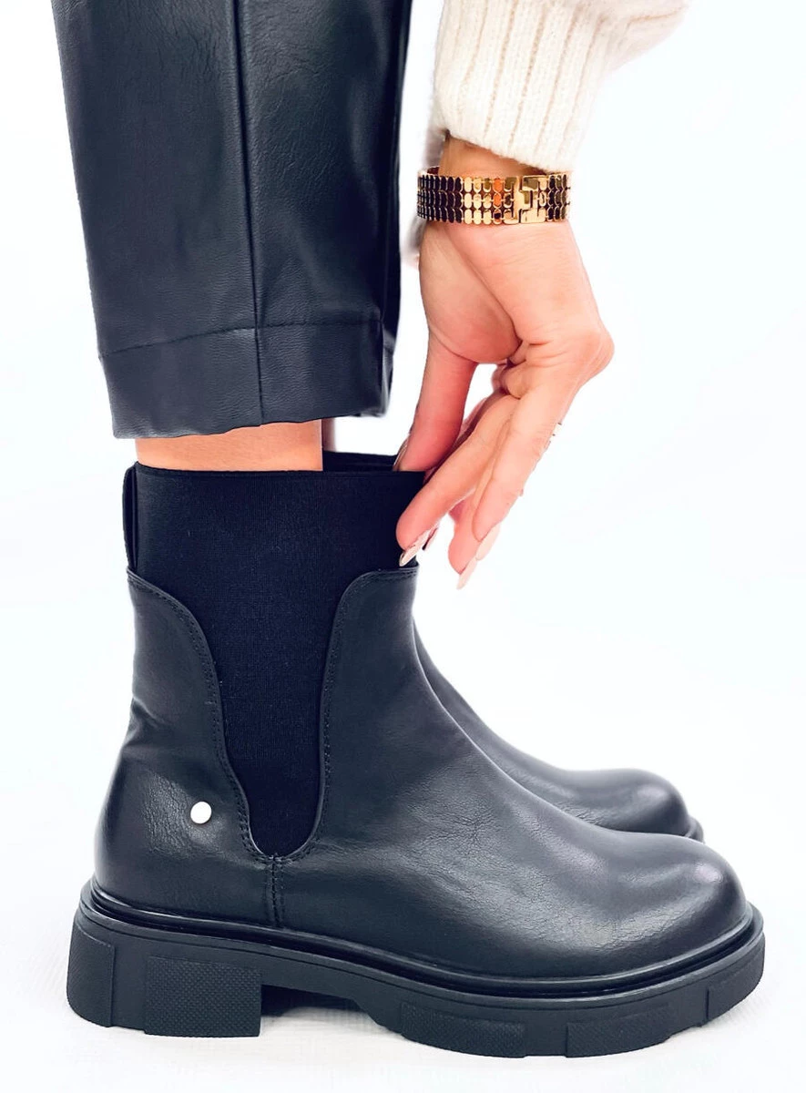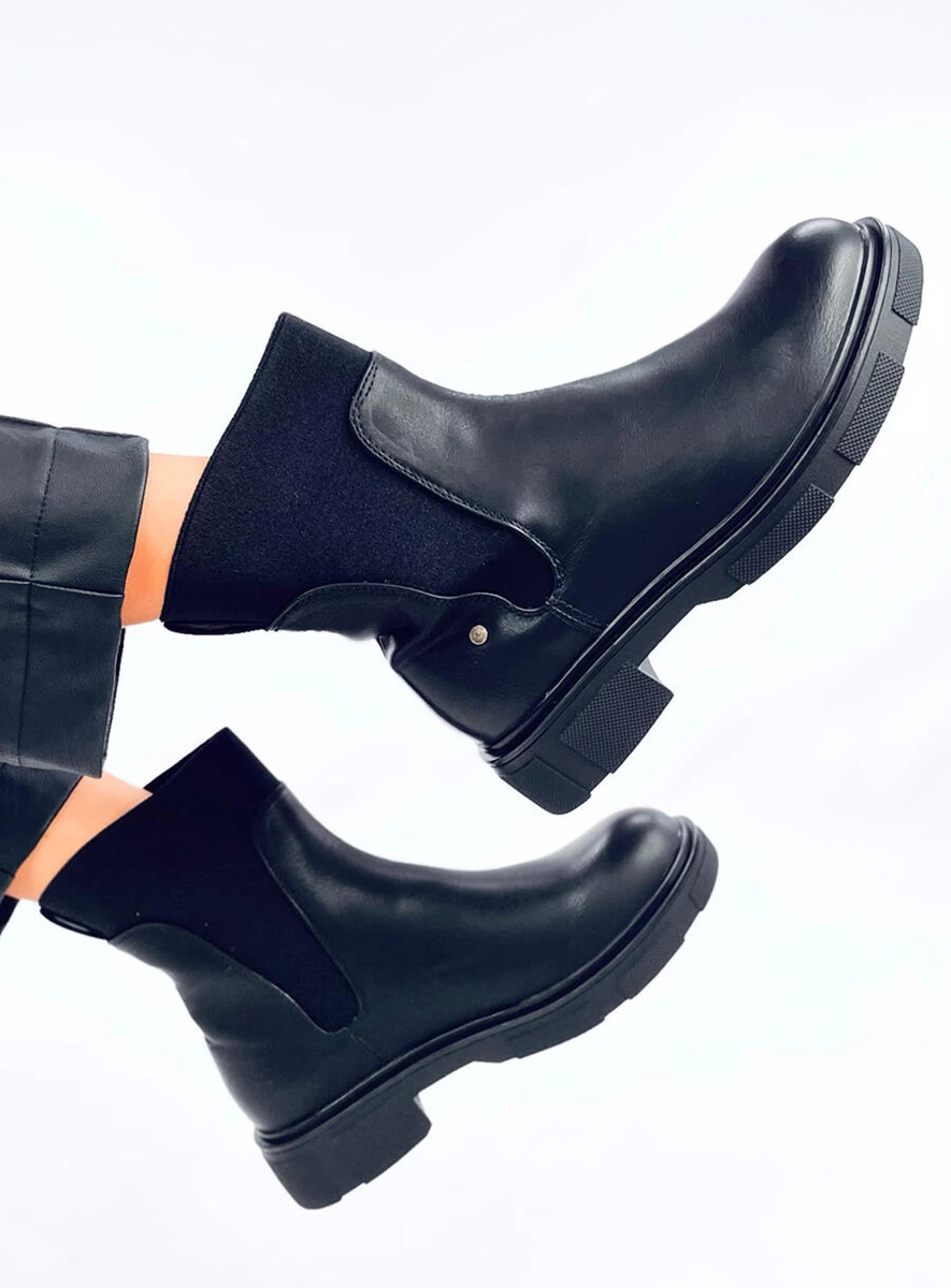 Botki damskie – sztyblety na grubej podeszwie. Model o ponadczasowym fasonie jest zawsze w modzie! Komfortowe, zaokrąglone noski oraz płaska podeszwa zapewnią wygodę na każdym kroku. Nie czekaj i zamów je już dziś! Materiał zewnętrzny – skóra ekologiczna (kolor black)/ zamsz ekologiczny (kolor khaki).