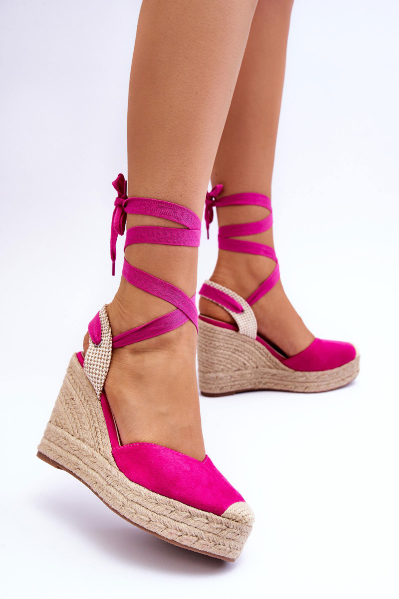 Wiązane Sandały Na Wysokim Koturnie Fuksja Lendy