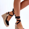 Wiązane Sandały Na Wysokim Koturnie Zielone Lendy