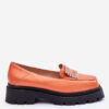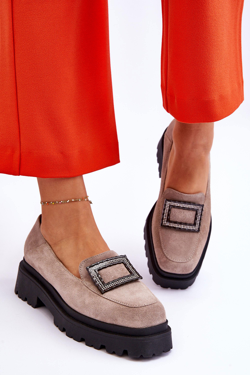 Modne, damskie mokasyny zostały wykonane z naturalnej skóry. Mokasyny osadzono na masywnej platformie oraz płaskim obcasie. Dodatkowo posiadają ozdobę z przodu z dżetami oraz usztywniany zapiętek. Miękka wkładka zapewni komfortowe użytkowanie. Mokasyny świetnie sprawdzą się w wielu stylizacjach! Przy wyborze rozmiaru prosimy sugerować się tabelą rozmiarów.