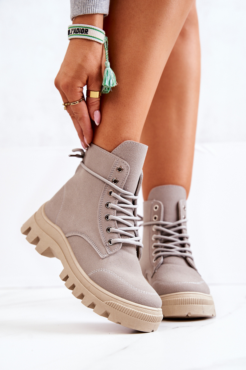 Zamszowe Botki Trapery Wiązane Szare Hurricane