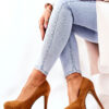 Szpilki idealne na lato! Zakryty przód z noskiem w szpic oraz odkryte pięty. Wykonane z zamszowej eko skóry. Model zapinany na sprzączkę z regulowanym paskiem. Osadzone na szpilce, która świetnie wysmukla i wydłuża optycznie nogi. Pasek wokół kostki podtrzymuje stopę. Szpilki te idealnie wpiszą się w eleganckie stylizacje do sukienek czy eleganckich spodni! Model, który powinien znaleźć się w Twojej szafie! Przy wyborze rozmiaru prosimy kierować się tabelą rozmiarów