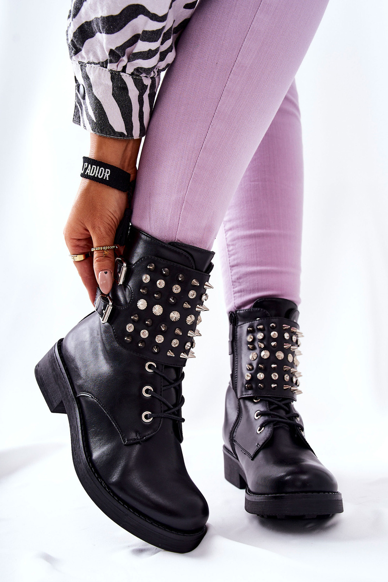 Botki Z Ćwiekami Na Suwak Czarne Laurena