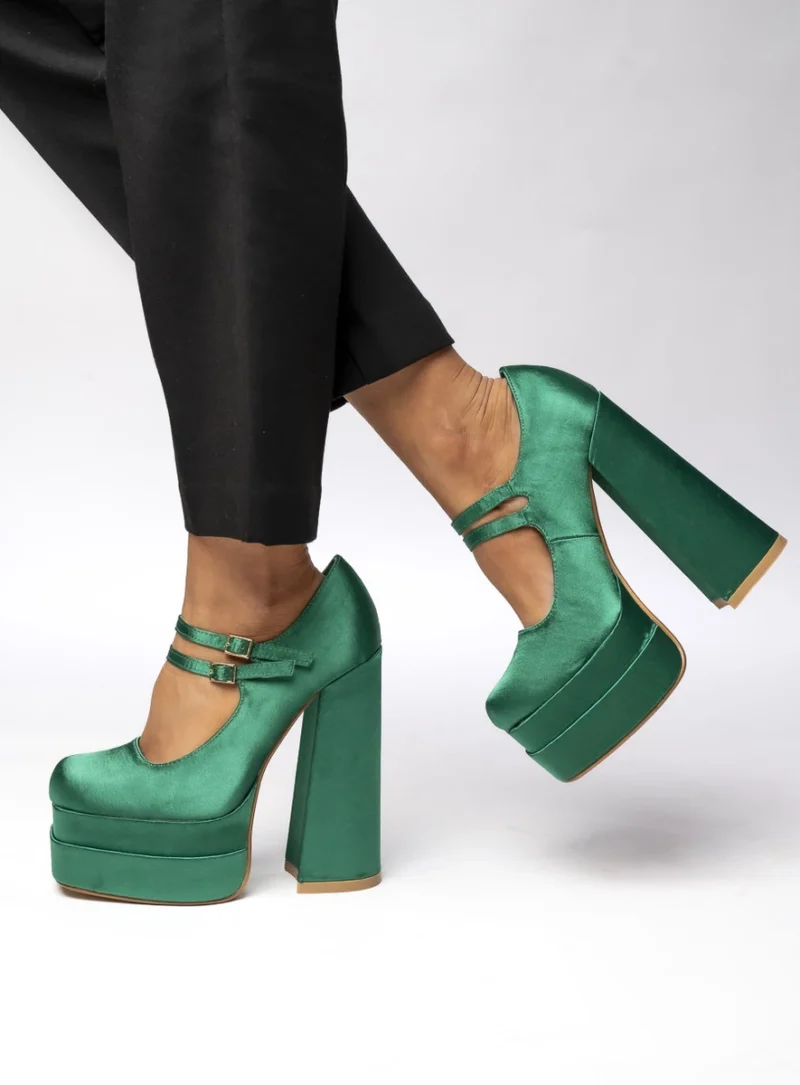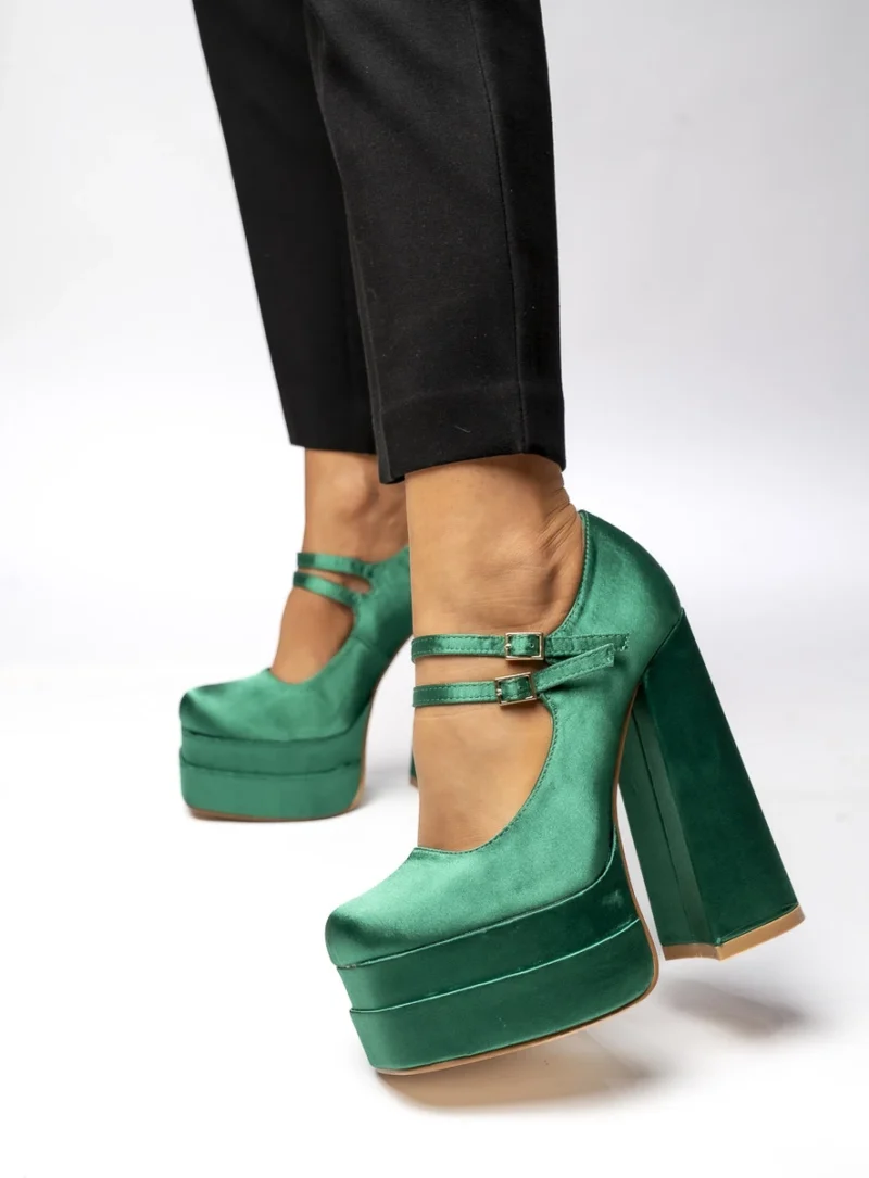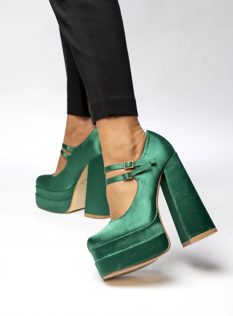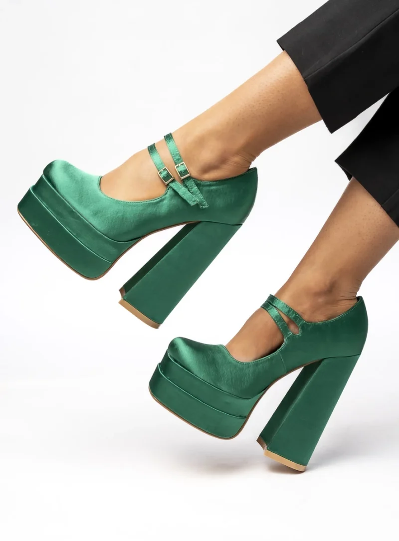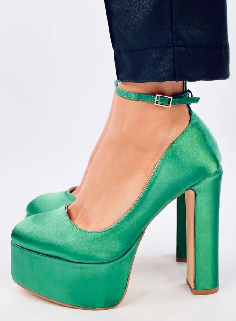 Czółenka na platformie satynowe PRANDI GREEN