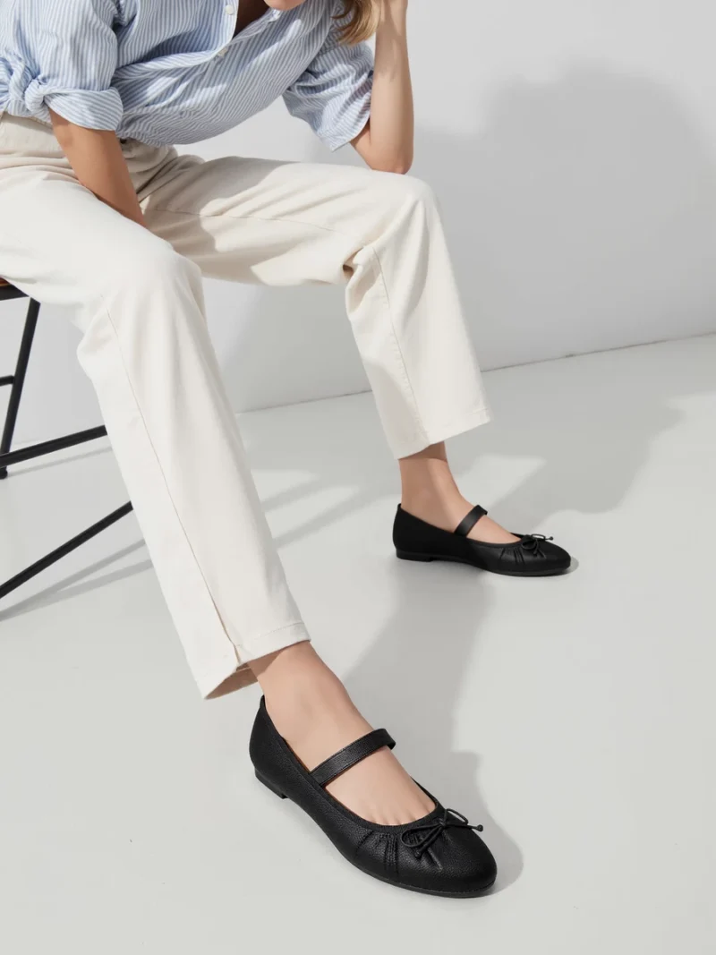 Damskie Baleriny BELLA BLACK – Klasyczna Elegancja z Nowoczesnym Akcentem