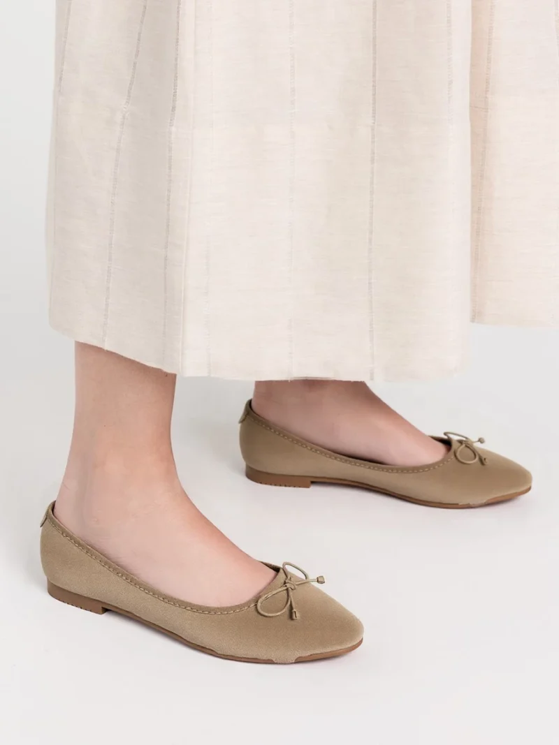 Damskie Baleriny BELLA KHAKI – Naturalny Minimalizm z Wyrafinowanym Akcentem