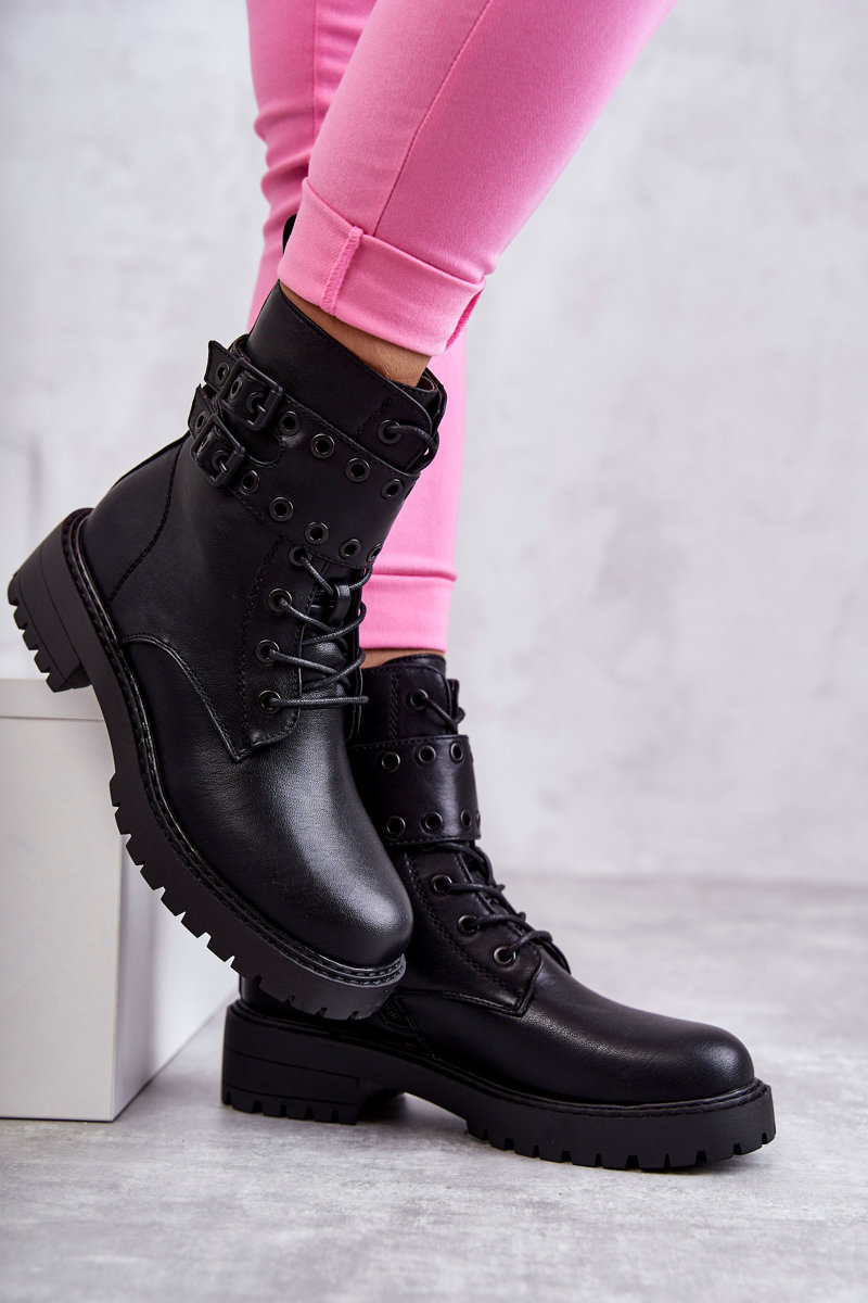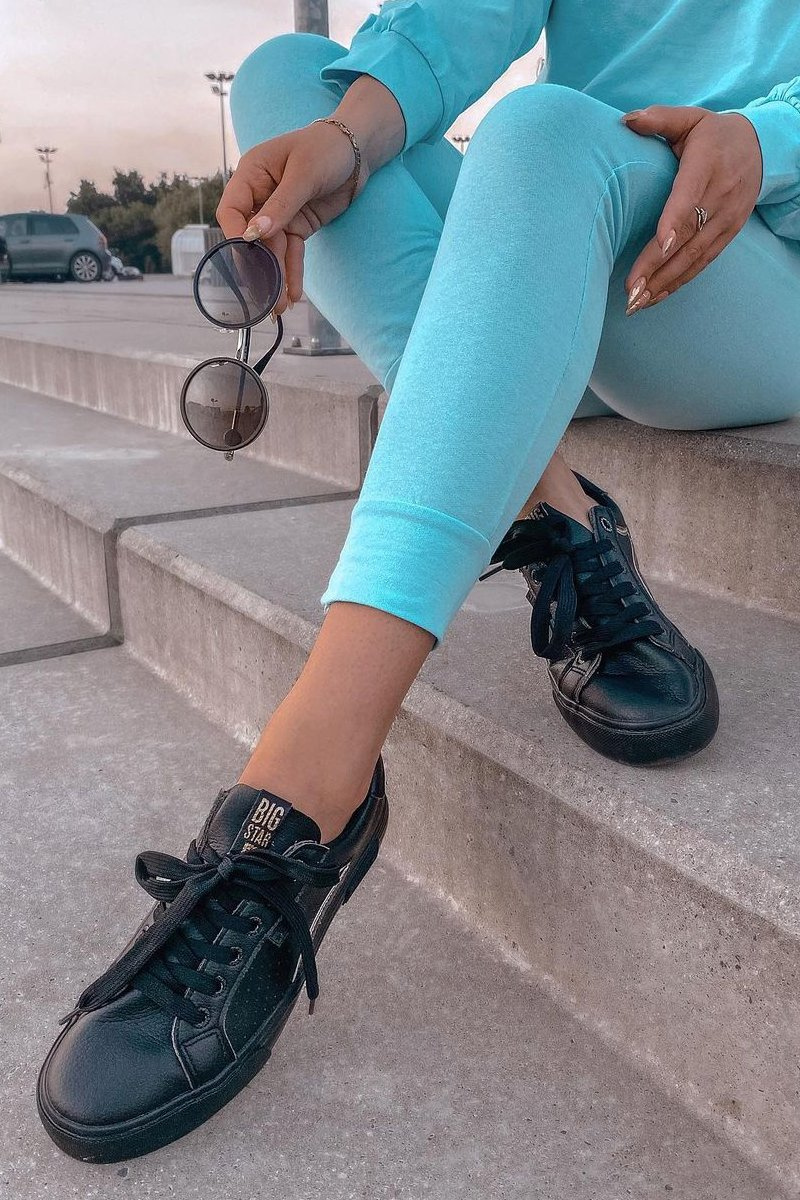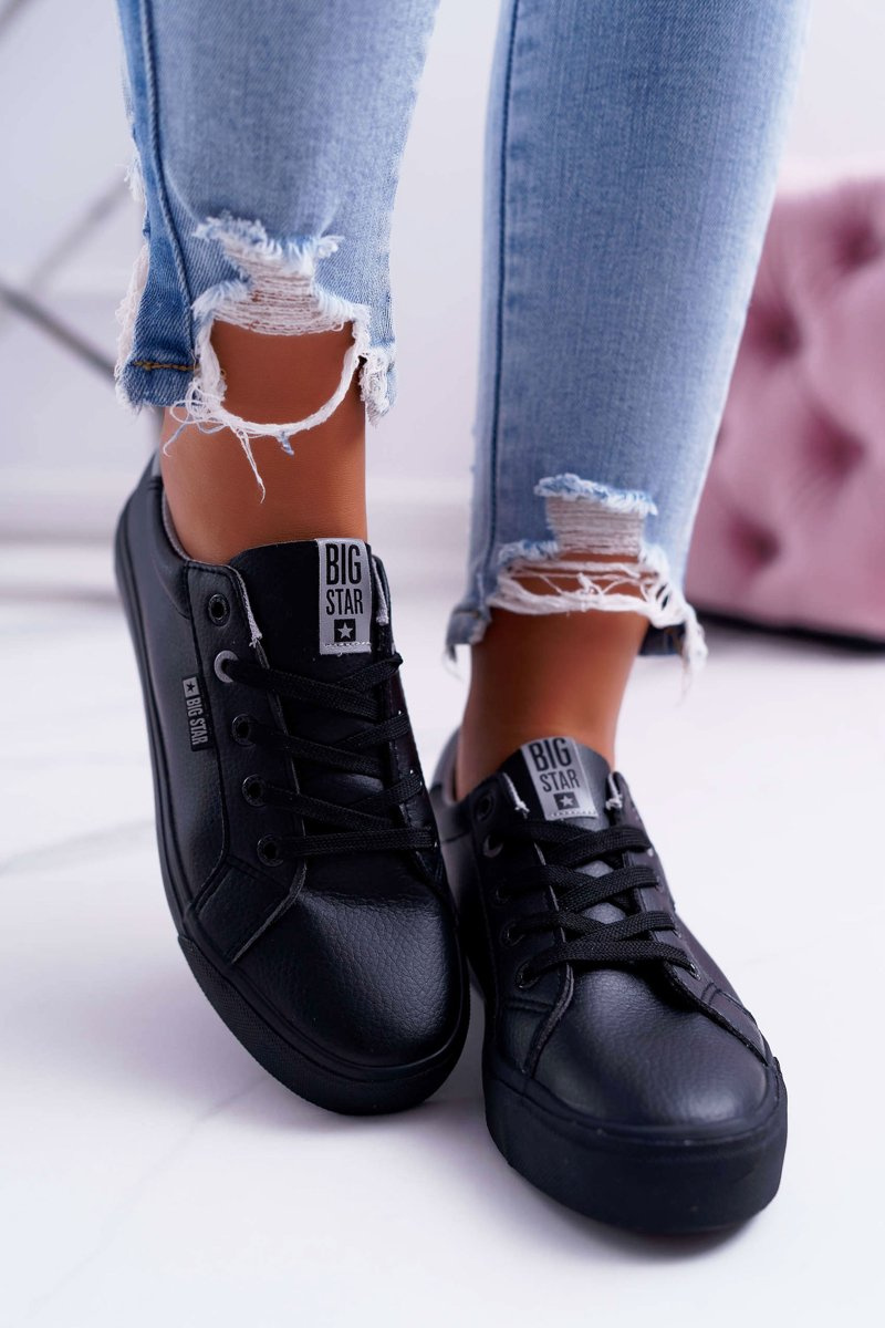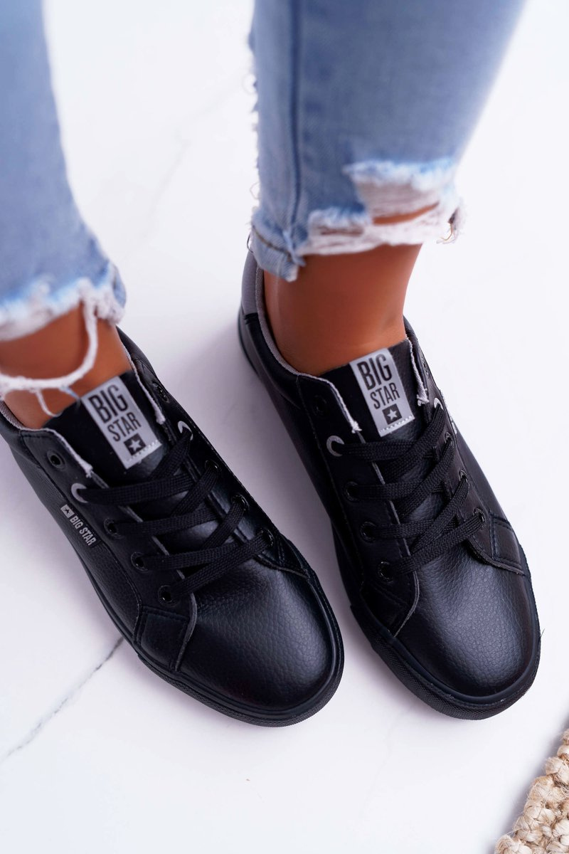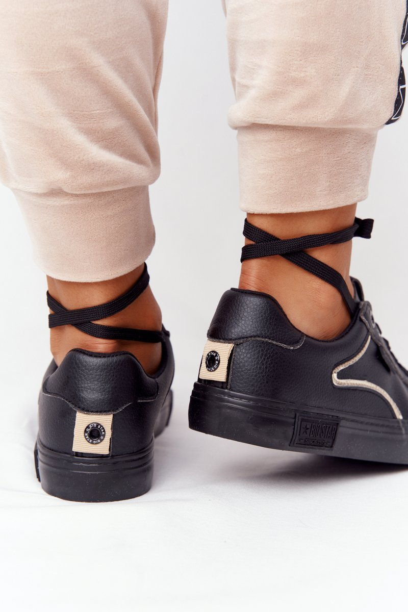 Damskie Skórzane Tenisówki BIG STAR HH274078 Czarno-Złote