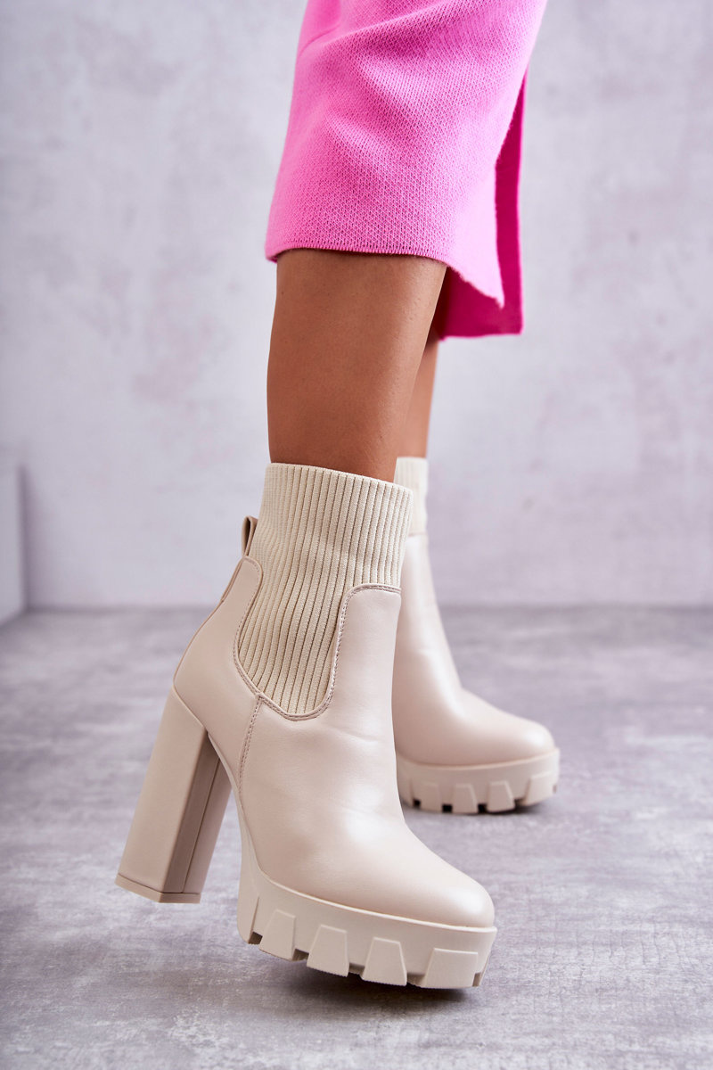 Damskie Skórzane Botki Ze Skarpetą Beżowe Adalyn