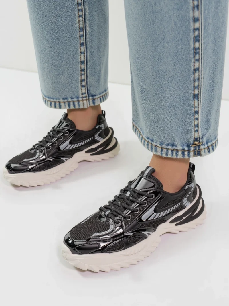 Damskie Sneakersy BLAIR BLACK- Wyrazista Platforma i Błyszczące Akcenty